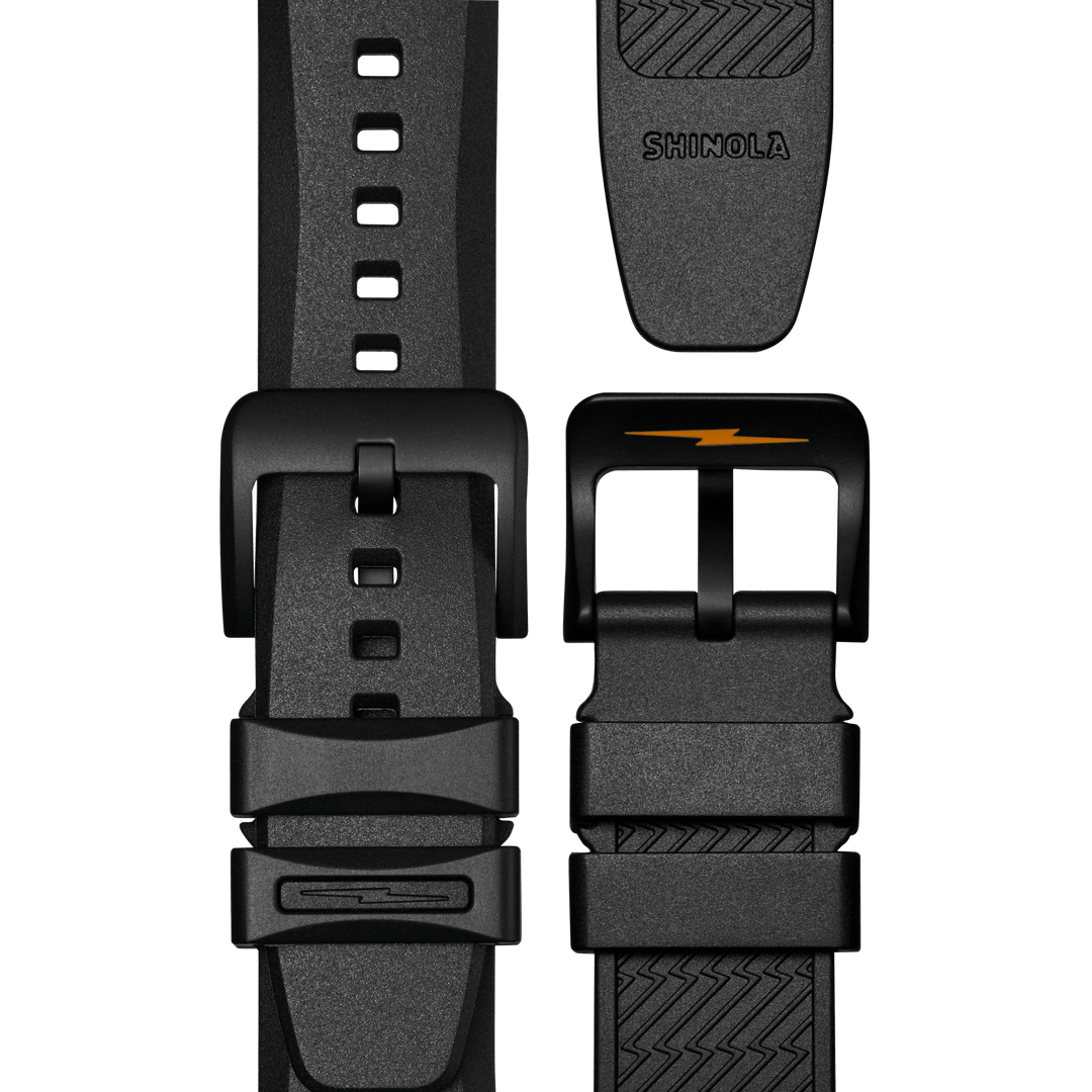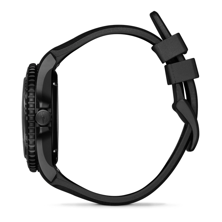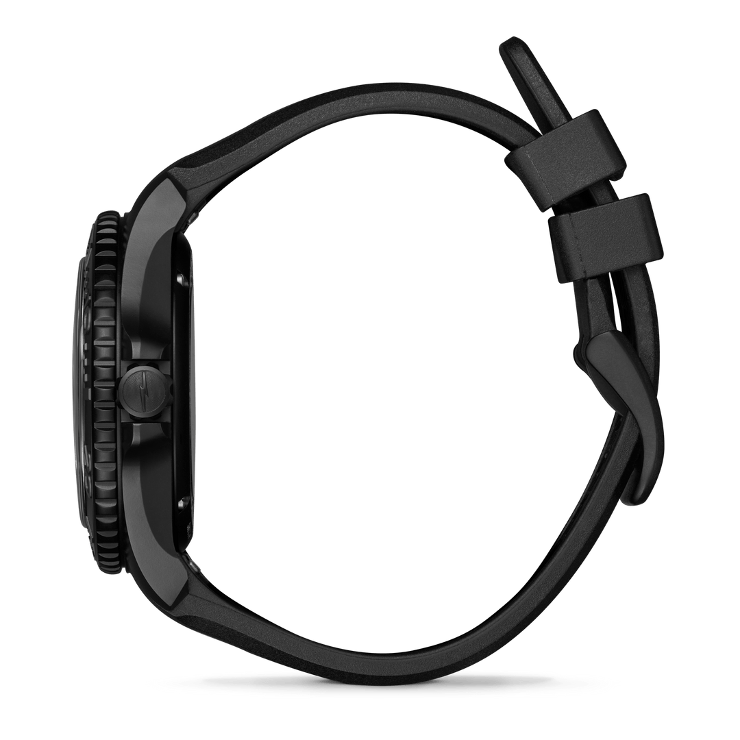 The Shinola Monster series continues to push the boundaries with cutting-edge materials—and the Ceramic Monster Automatic is no different. This stunning sport watch features a case body and unidirectional bezel insert crafted with scratch-resistant, lightweight black ceramic. High-grade 316L black PVD-coated stainless steel gives the core and crown its trademark strength and durability and houses the powerful automatic movement, revealed by an exhibition window.  An integrated black rubber strap is an extension of the ceramic watch case. Beautiful details harken to legendary tales of life on the water—core to the Shinola Monster family. Admire the wave-etched dial and caseback and pops of color inspired by the heroic fireboats of the Great Lakes.