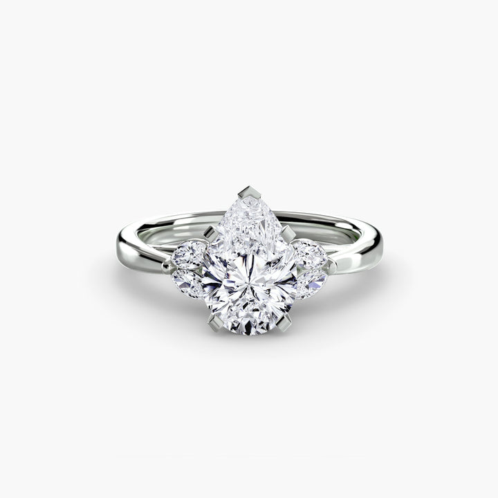 Designed with side stones that gracefully complement the center stone, this ring strikes a balance between classic elegance and added brilliance. Perfect for those who want a refined look with just the right amount of sparkle.