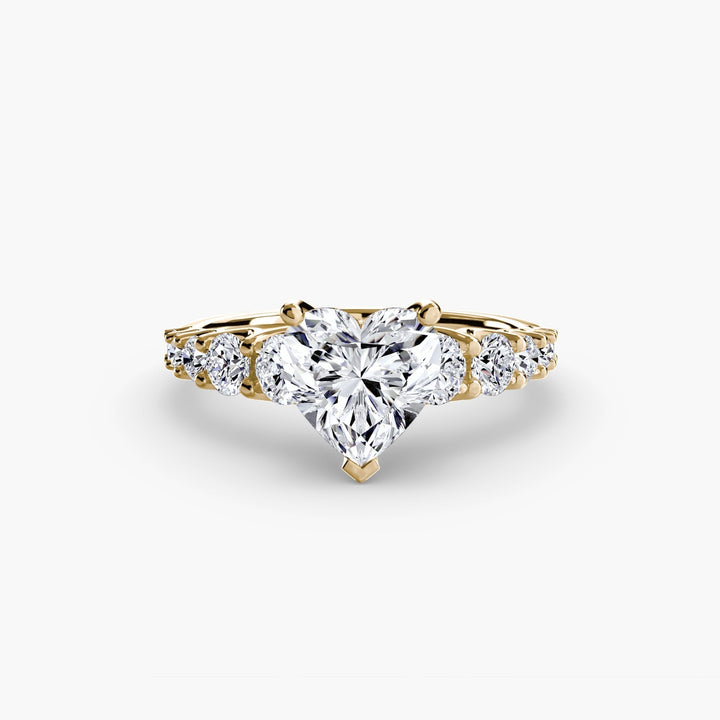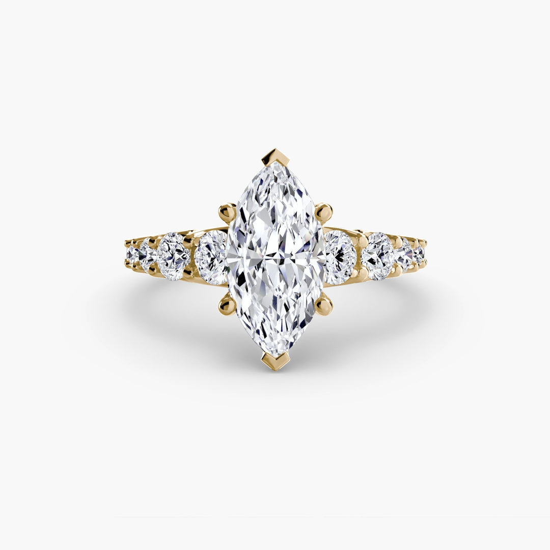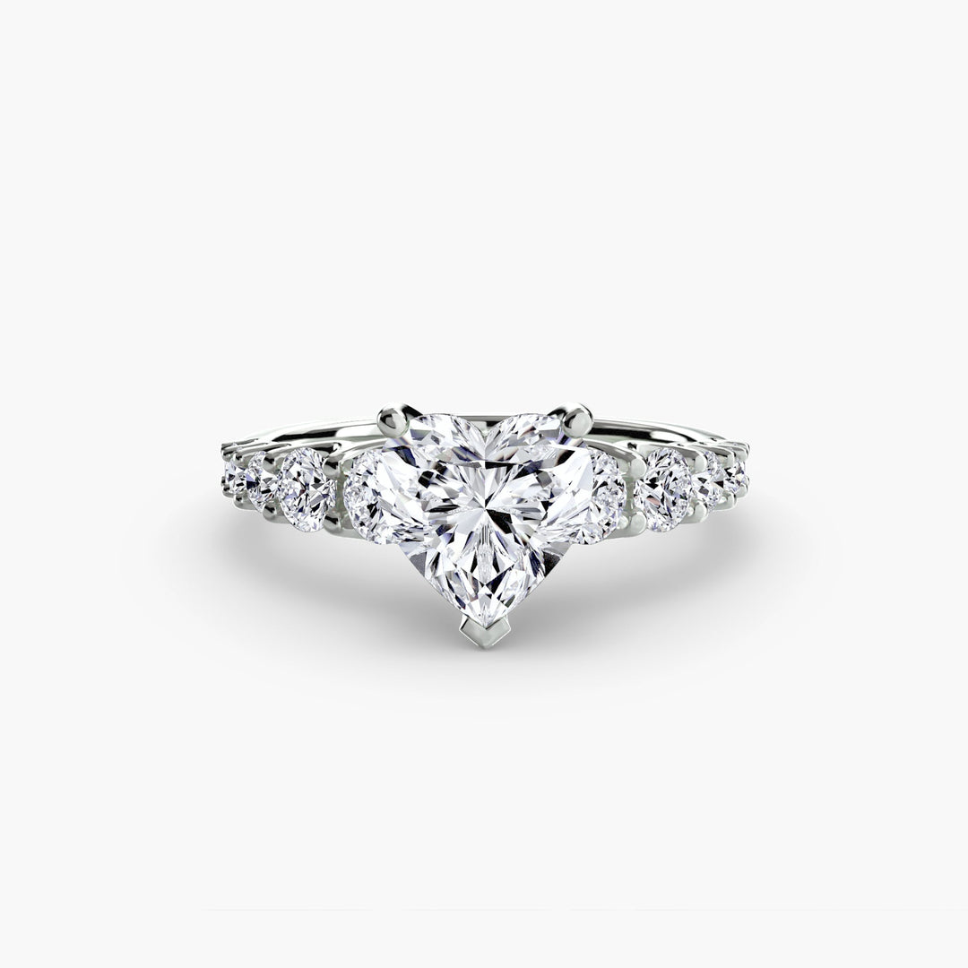 Designed with side stones that gracefully complement the center stone, this ring strikes a balance between classic elegance and added brilliance. Perfect for those who want a refined look with just the right amount of sparkle.