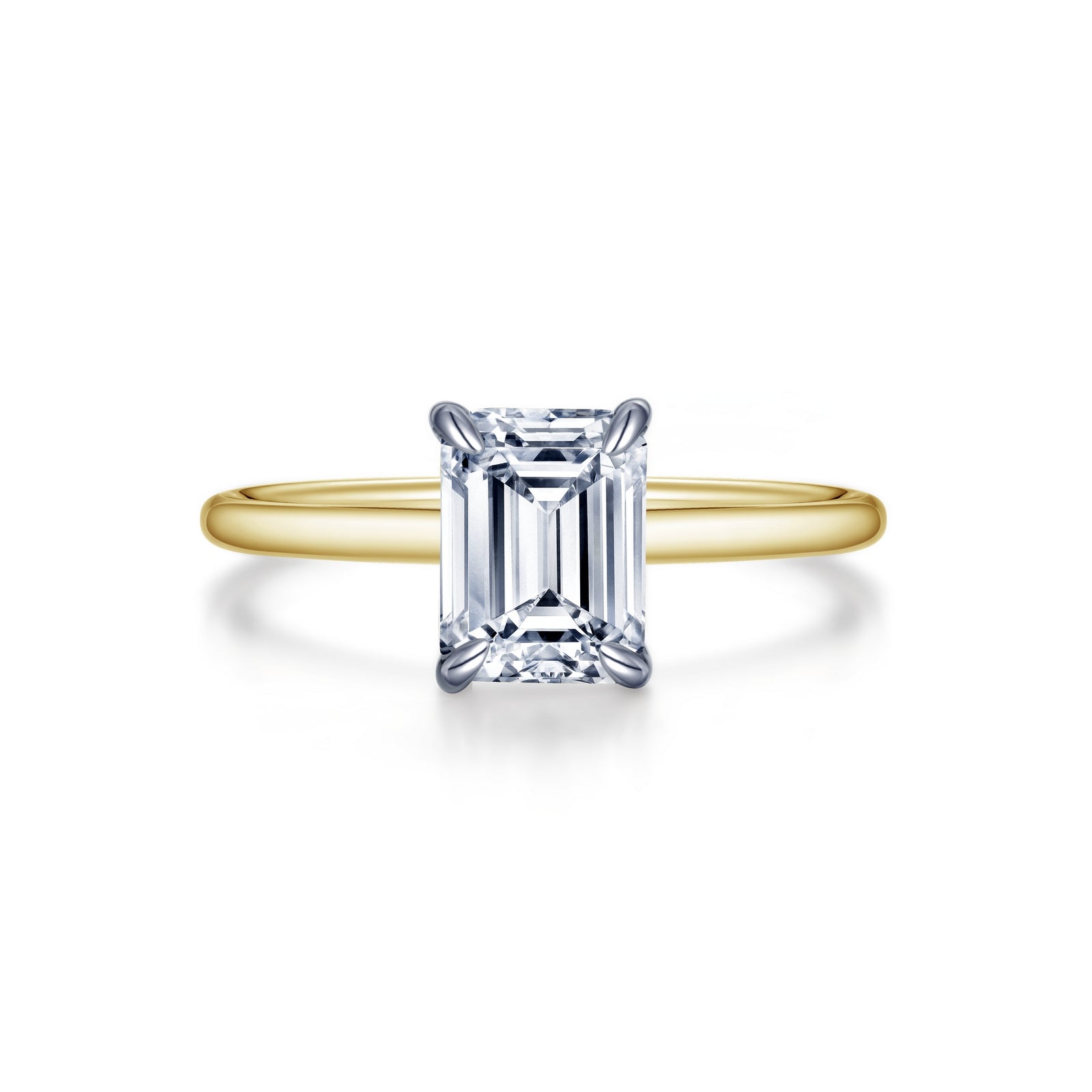 Simple yet elegant. This classic solitaire engagement ring features a Lafonn's signature Lassaire emerald-cut simulated diamond in sterling silver using Lafonn's exclusive TR Gold, a new and improved plating process that preserves the rich color of gold and enhances the wearability of our gold-plated styles.