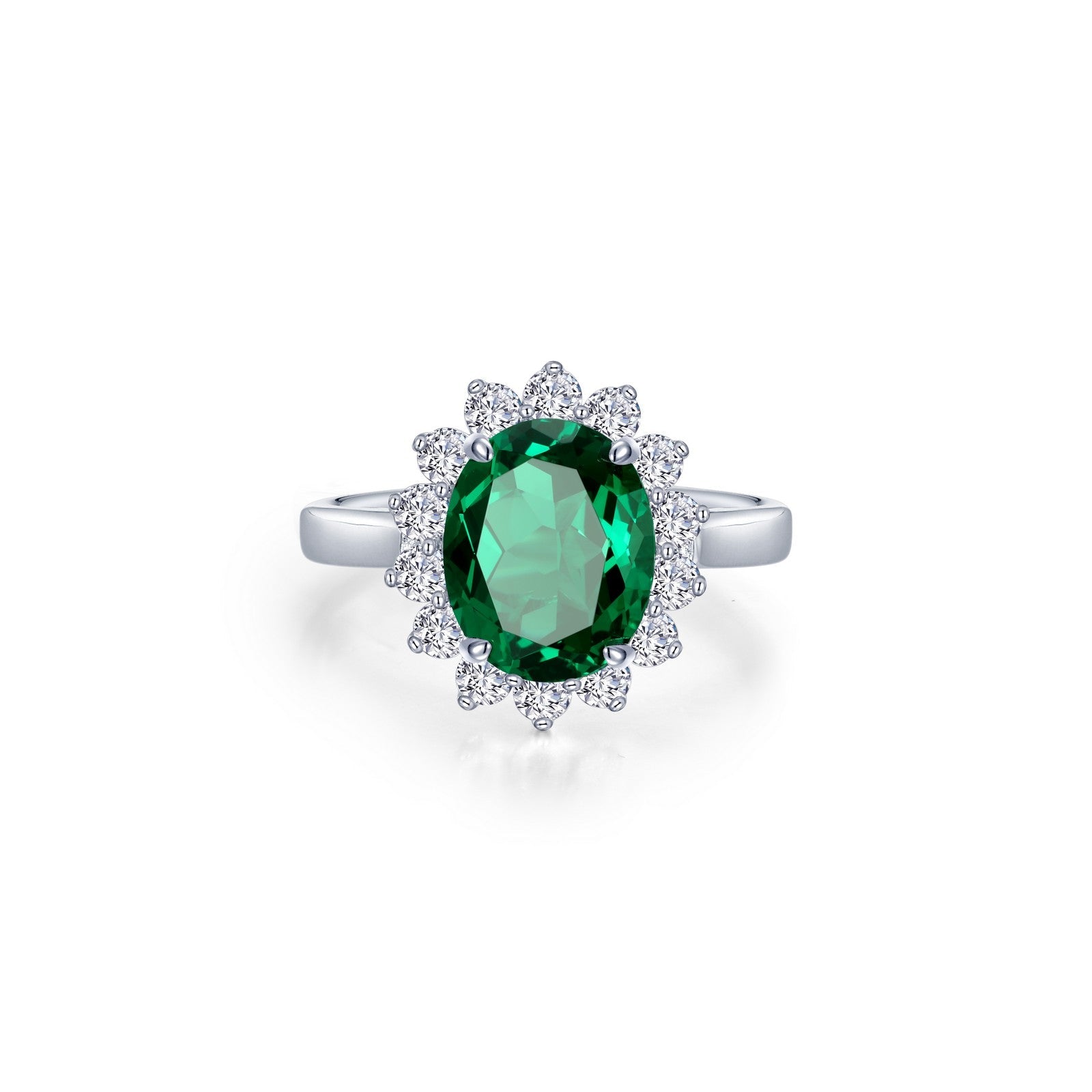 Simple and chic. This charming halo ring features Lafonn's signature Lassaire simulated emerald and simulated diamonds in sterling silver bonded with platinum.
