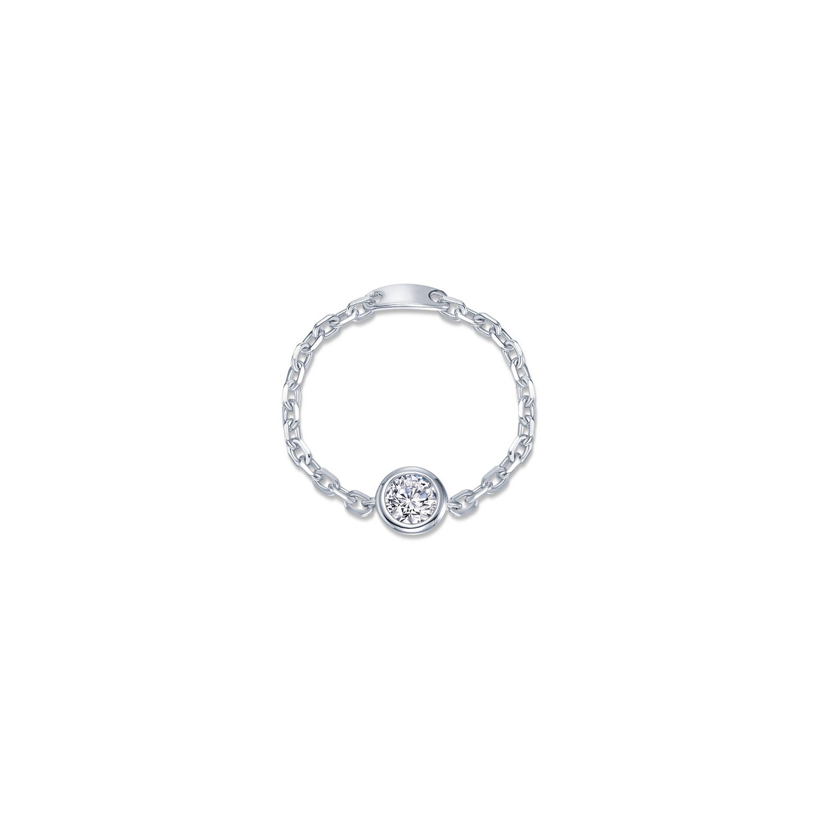 Cute and contemporary. This dainty chain ring features a bezel-set Lafonn's signature Lassaire simulated diamond in sterling silver bonded with platinum.