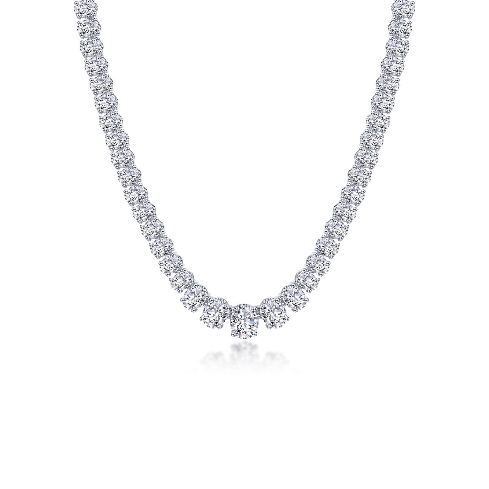 A stunning regal statement. This shimmering 59 CTW graduated tennis choker necklace is set with Lafonn's signature Lassaire oval simulated diamonds in sterling silver bonded with platinum.