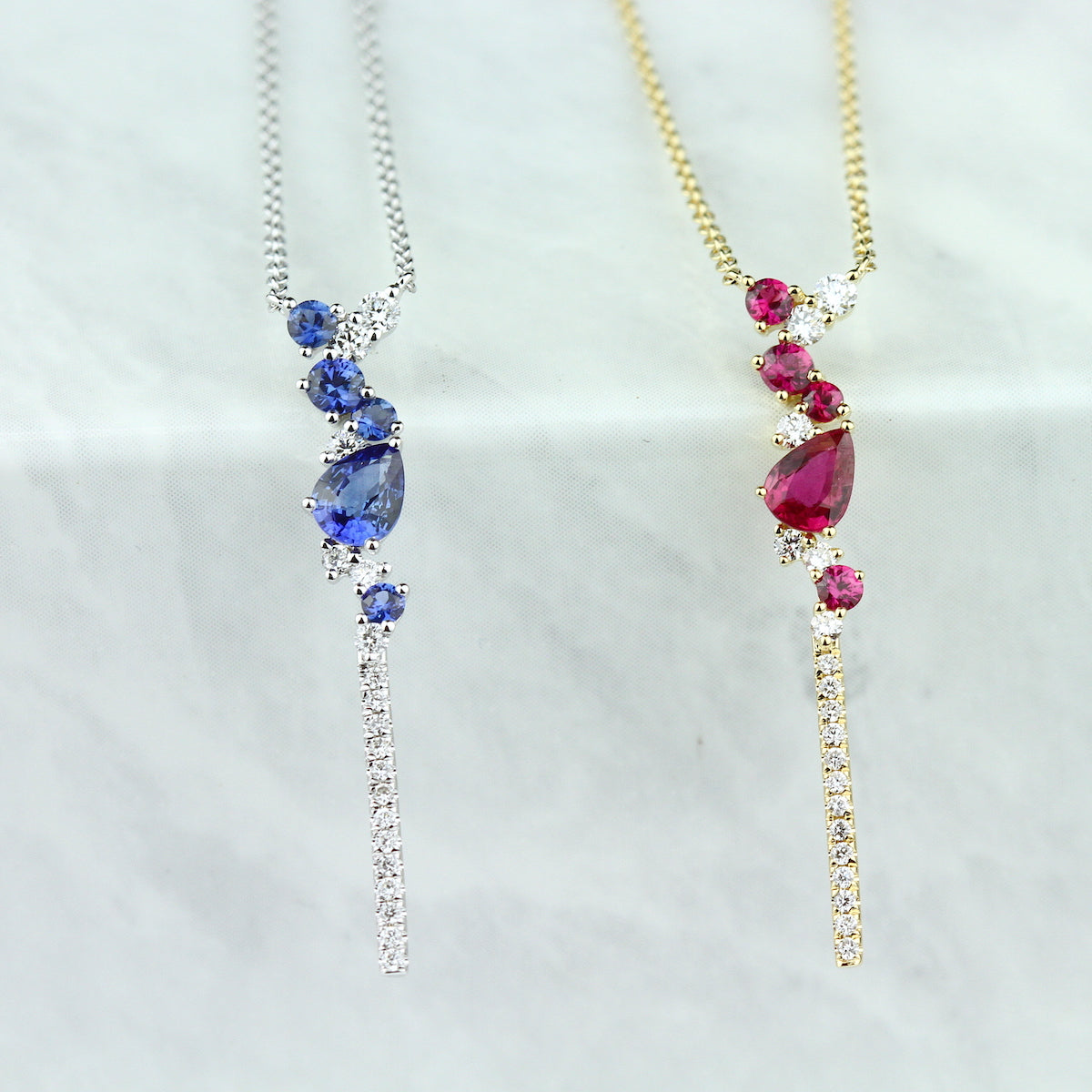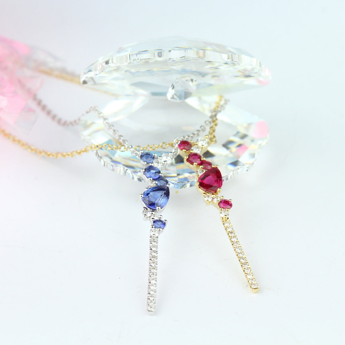 From the Parade in Color collection, a vibrant pear shaped pink sapphire shines atop a diamond band in 18k rose gold.