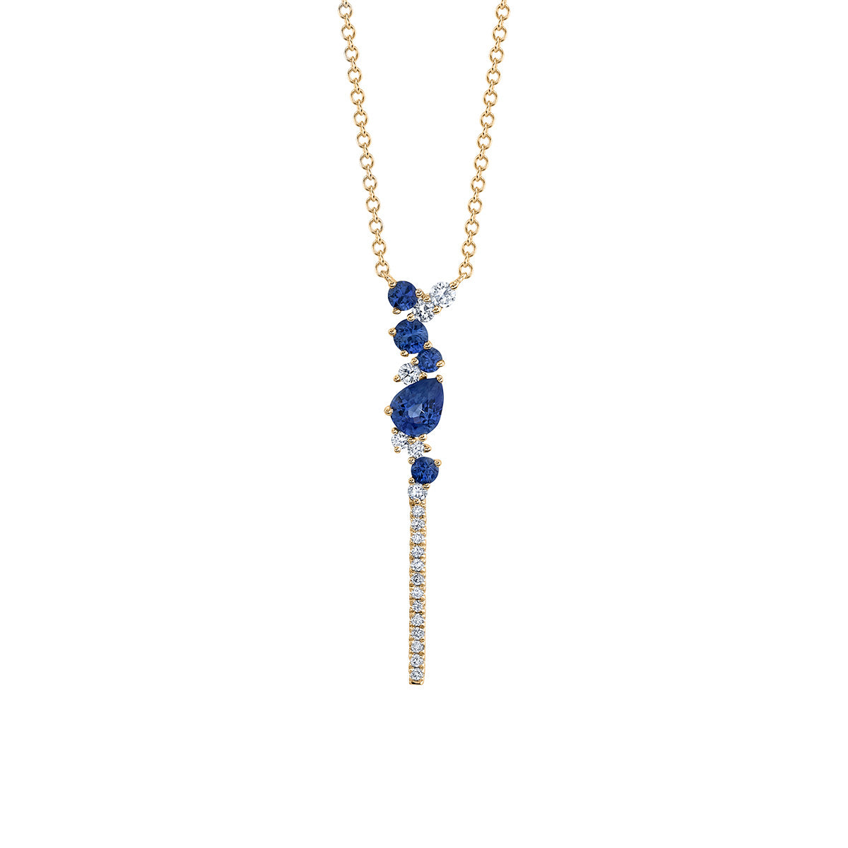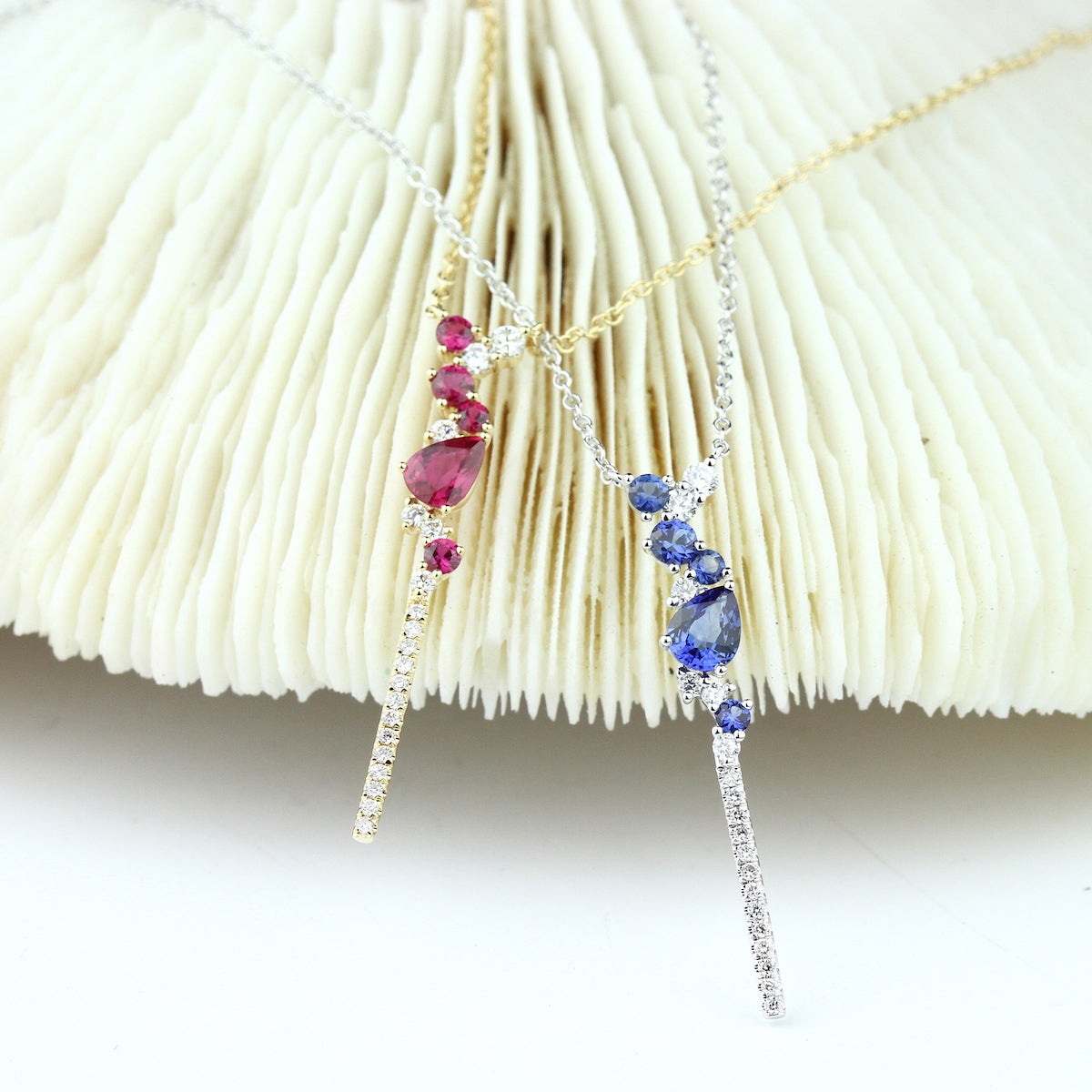 Luminous tumbled sapphires form a sculptural bloom, finished with black rhodium and sparkling white diamonds.