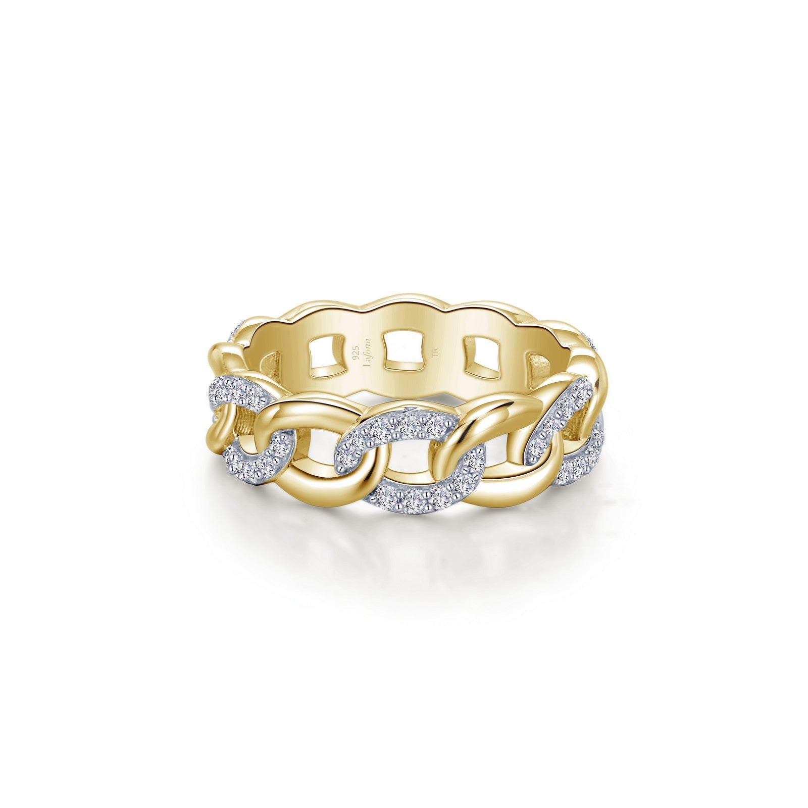 A timeless classic. This elegant alternating interlocking circles eternity band features Lafonn's signature simulated diamonds in sterling silver using Lafonn's exclusive TR Gold, a new and improved plating process that preserves the rich color of gold and enhances the wearability of our gold-plated styles.