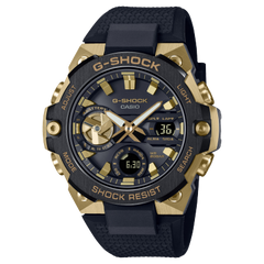 Revel in the eclectic G-STEEL combination of metal and resin components in an ever-popular color scheme of black and gold. Tough construction meets stylish design with metal bezel ion-plated in gold set against a black base. This sophisticated fashion statement with a luxury feel and cool look takes you where you want to go.