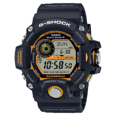 Conquer tough terrain and grab attention with a rugged timepiece boasting a bold, eye-catching color scheme. Designed to work even in the harshest environments, MASTER of G specialty watches take timekeeping to new heights with a rugged design accented in the bright yellow used for emergency rescues. The GW9400 RANGEMAN is equipped with Triple Sensor to deliver altitude, direction, temperature and barometric pressure readings directly to your wrist. The cylindrical button guard structure ensures smooth and accurate operation of the sensor button. Press the sensor button and the most recently used sensor mode is instantly displayed. Three different types of beeps indicate different measurement modes — handy for no-look operation that frees your focus for rugged adventure.