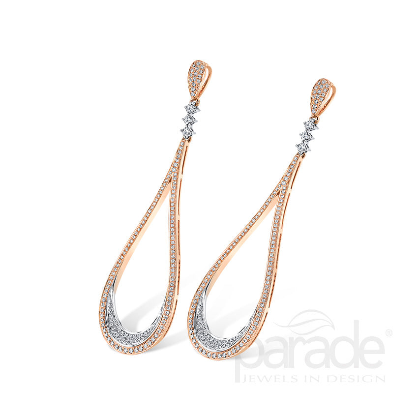 Ribbons of 18K white and rose gold set with glittering white diamonds form this simple yet chic tear drop earrings from the Lumiere collection.