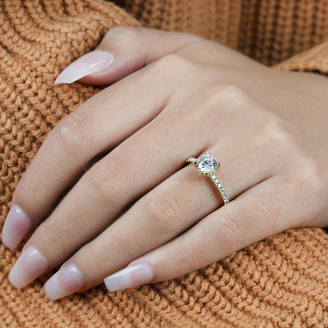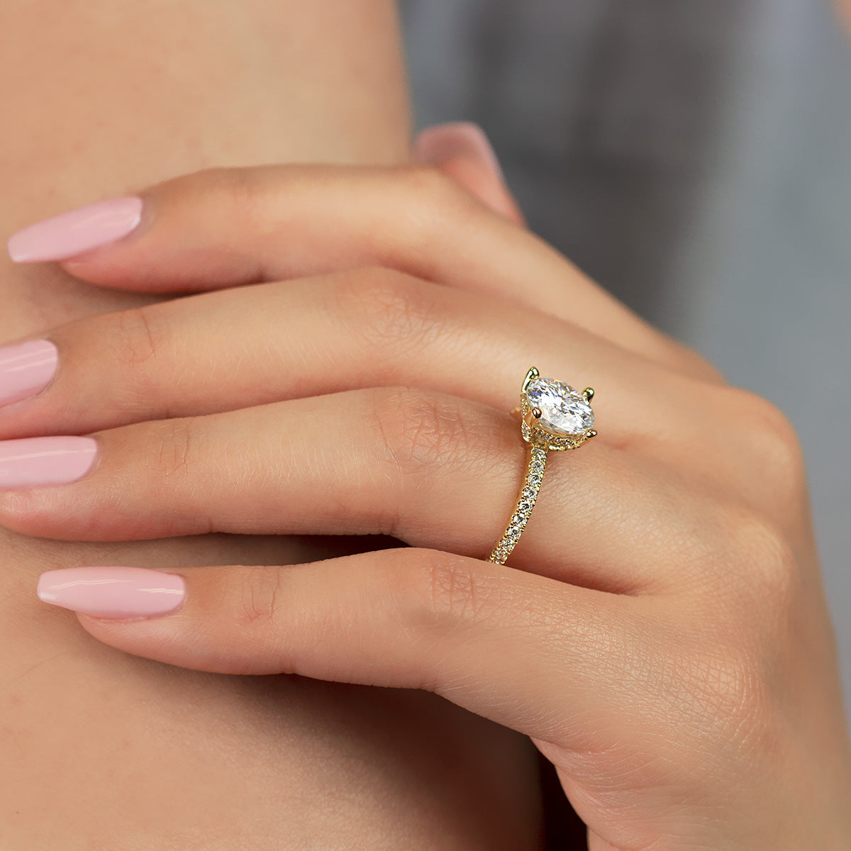 Stunning from every angle, brilliant diamonds surround a cushion center diamond in this classic setting.