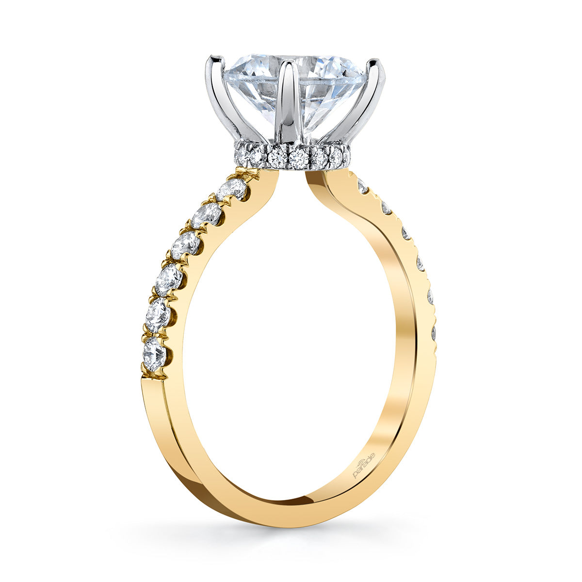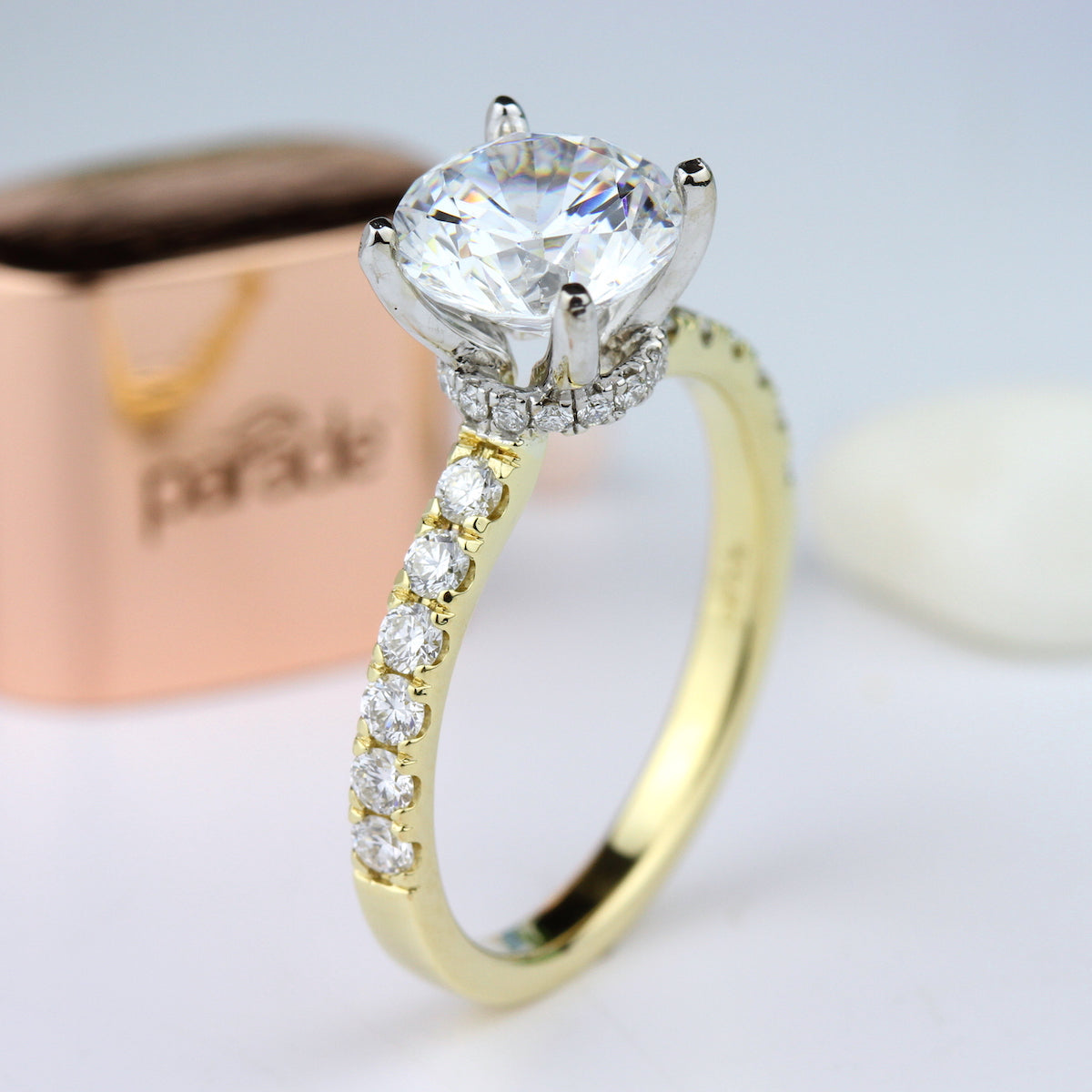 This modern classic is sculpted in rich, warm gold and embraced by a lustrous white hidden halo.