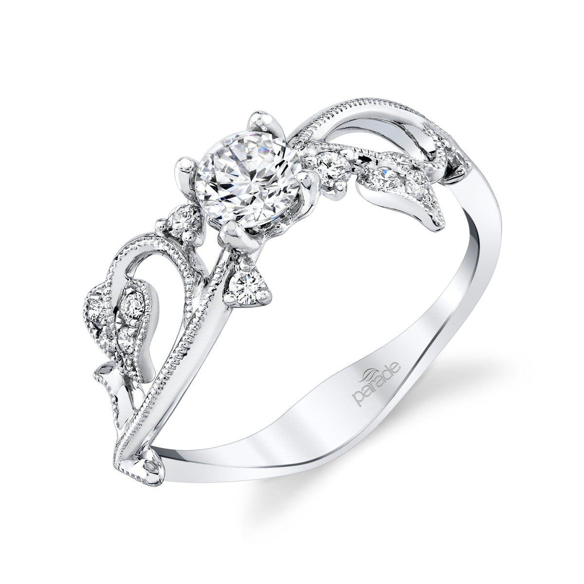 The Parade Design Lyria Bridal R4786/R1 is a stunning engagement ring that beautifully captures the essence of nature with its Lyria Leaves floral motif. Expertly crafted, this ring features intricately detailed leaves that gracefully wrap around a dazzling center diamond, enhancing its brilliance and sparkle. The design offers a timeless elegance that blends classic floral inspiration with a modern touch, making it an exceptional choice for those seeking a unique yet sophisticated symbol of love. Its meticulous craftsmanship ensures durability and comfort for daily wear, while its distinctive aesthetics make it a cherished heirloom for generations to come.