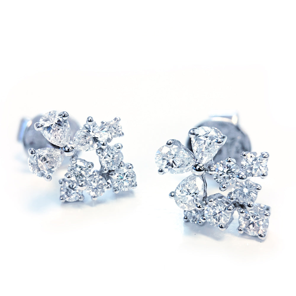 Treat your ears to a confetti of round and pearshape diamond sparklers.
