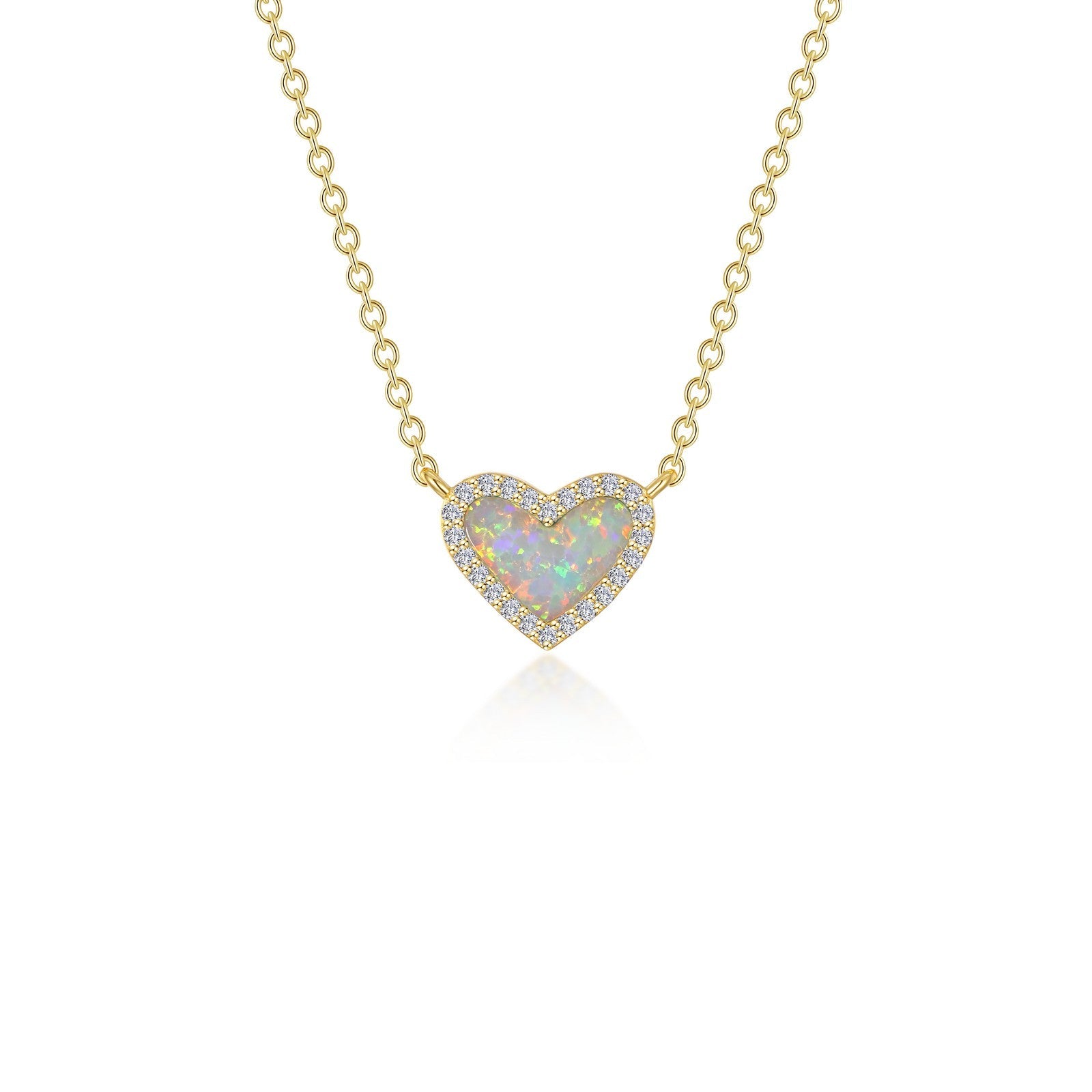 Timeless elegance. This adjustable halo heart necklace features a simulated opal surrounded by Lafonn's signature Lassaire simulated diamonds in sterling silver using Lafonn's exclusive TR Gold, a new and improved plating process that preserves the rich color of gold and enhances the wearability of our gold-plated styles.