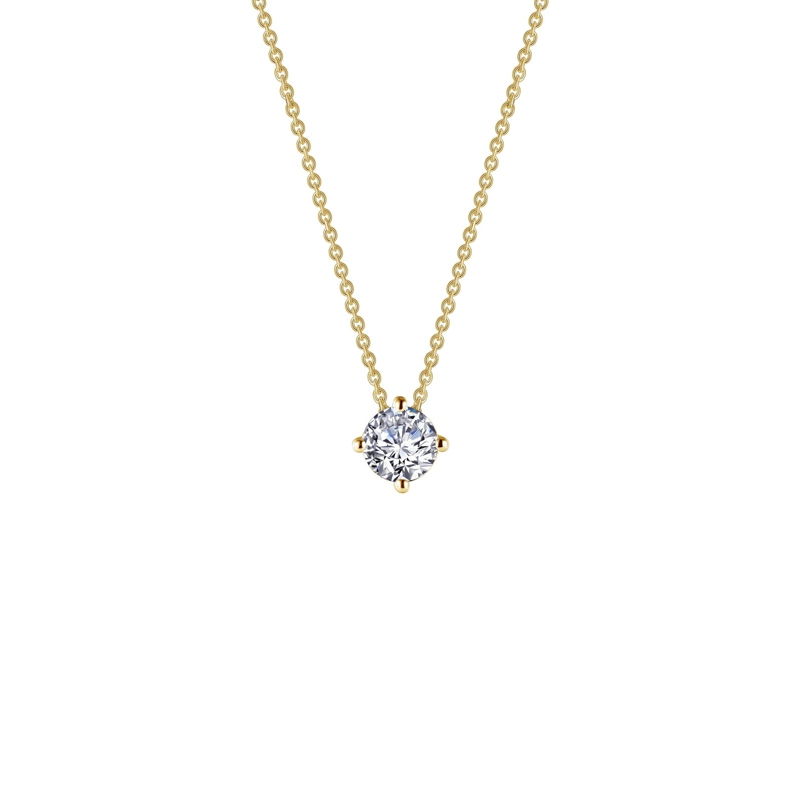 Timeless classics for everyday wear. This adjustable solitaire necklace is set with a Lafonn's signature Lassaire simulated diamond in sterling silver using Lafonn's exclusive TR Gold, a new and improved plating process that preserves the rich color of gold and enhances the wearability of our gold-plated styles. Simulated diamond is 5.0 mm in diameter.