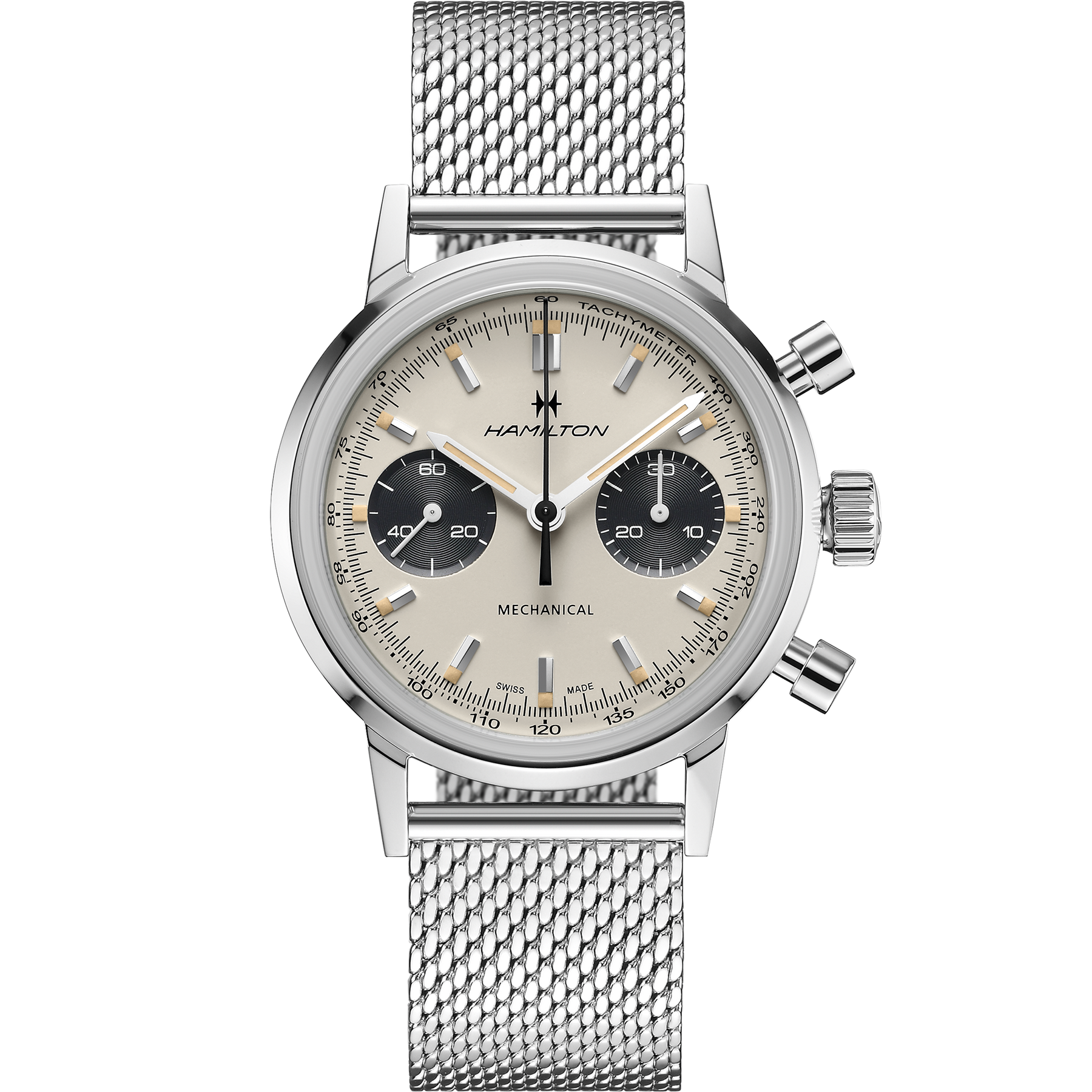 Feel the emotion at the heart of watchmaking with each wind of the Intra-Matic Chronograph H. Powered by our new, exclusive hand-wound chronograph movement the H-51 this is a timepiece with soul. A box-shaped sapphire crystal with double anti-reflective coating protects our signature panda dial, adding another layer of authentic heritage to this mechanical version of a vintage-inspired favorite.