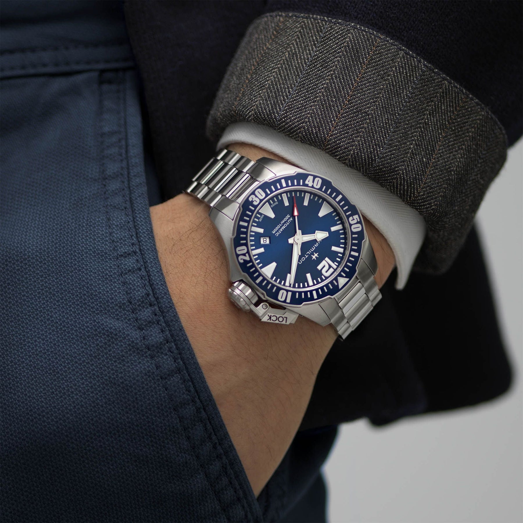 The original Hamilton Frogman was created for U.S. Naval 'Frogman' teams and featured in the 1951 smash-hit movie 'The Frogmen'. Almost 70 years have passed since then and watchmaking technology has come a long way. What hasn't changed are the vital features that made the watch as big a hit as the movie: Uni-directional rotating bezel, supreme water resistance and underwater luminescence.