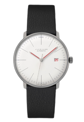 More than 100 years have now passed since the foundation of the state-owned Bauhaus. The school of thought philosophy conceived by Bauhaus scholar Max Bill lives on today in our max bill editions. Their minimalistic design ensures that they are just as relevant today as they were at the time of their conception. It is possible to view the internal movement of the watch through the windows of the Bauhaus depicted on the case back.