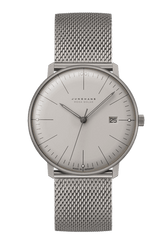 max bill MEGA Solar - Its minimalist design is timeless, and all of the power it requires is provided naturally from the sun. Due to its titanium composition, the watch is surprisingly light and has an extremely pleasant feel on the skin. A state-of-the-art radio-controlled movement, perpetual calendar and effortless adjustment of the time zones are included for added comfort. Time zones can be set either using the crown or in a matter of seconds via Junghans’ own time signal from the Junghans MEGA App. The design of the max bill MEGA Solar is also very indicative of its sustainability: That quintessential, minimalistic Bauhaus style is simply timeless – conforming with the fashion of yesterday, today, tomorrow and beyond.
