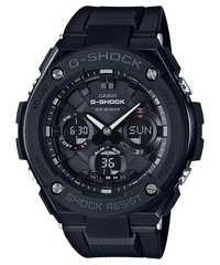 From G-SHOCK, the watch brand that is constantly setting new standards for timekeeping toughness, comes new G-STEEL models, a watch series with a new "Layer Guard Structure*." The GST-S100G that combines a solid case with a resin band. The overall black coloring of this model is offset by white hour and minute hands for designs that are chic and cool. A Tough Solar power system ensures virtually uninterrupted operation, while a hand shift feature temporarily moves hands out of the way with the press of a button for easy reading of digital display contents. Double-LED face illumination keeps the face and digital display easy to read, even in the dark. The new G-STEEL model is the perfect blend of different types of materials, a new structure, and fashionable design.
