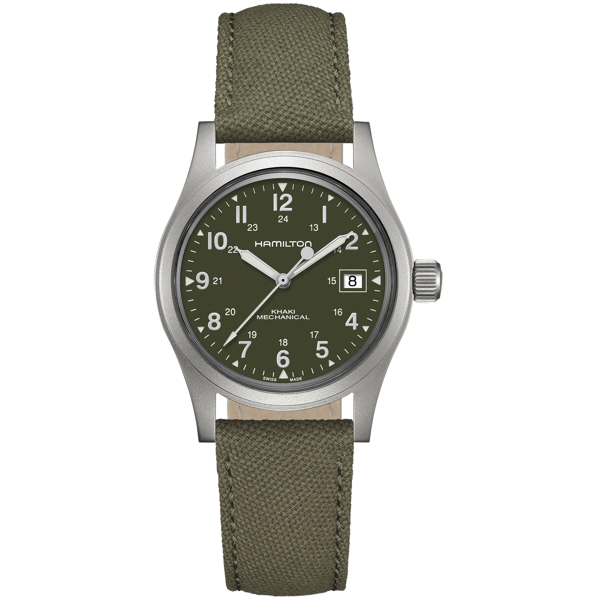 This is simplicity at its best. The Khaki Field Officer Handwinding offers basic functions and components for the no-nonsense, rugged watch wearer. Available with a choice of leather or canvas strap it is a timepiece not to be overlooked. *Featured in Pearl Harbor (2001). Worn by Capt. Rafe McCawley / Capt. Danny Walker, played by Ben Affleck / Josh Hartnett. Discover our collection of rugged military watches