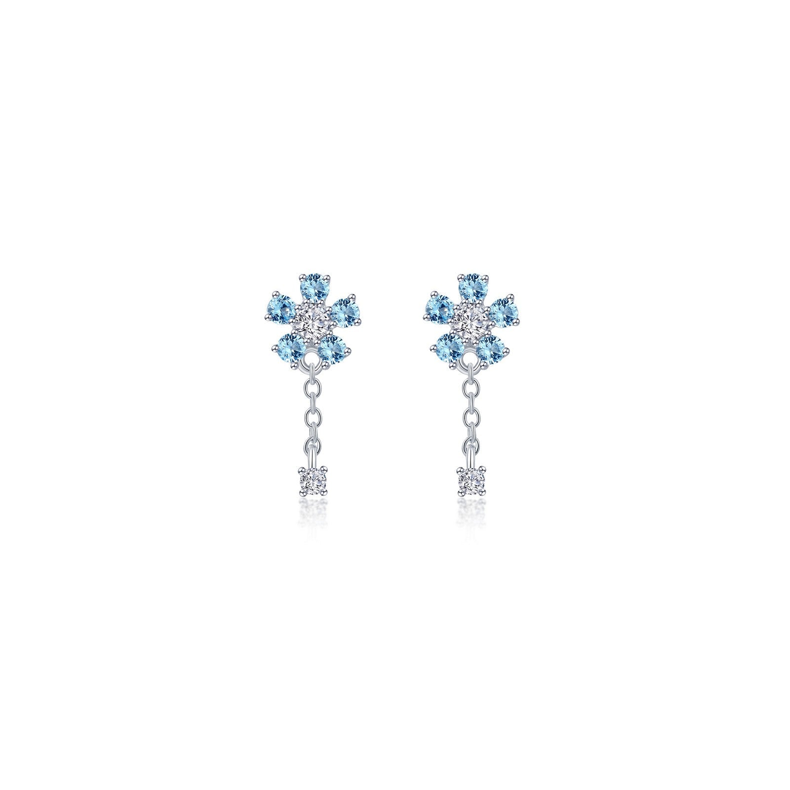 Dainty and charming. These adorable mini flower dangle earrings feature simulated blue topazes and signature Lassaire simulated diamonds in sterling silver bonded with platinum.