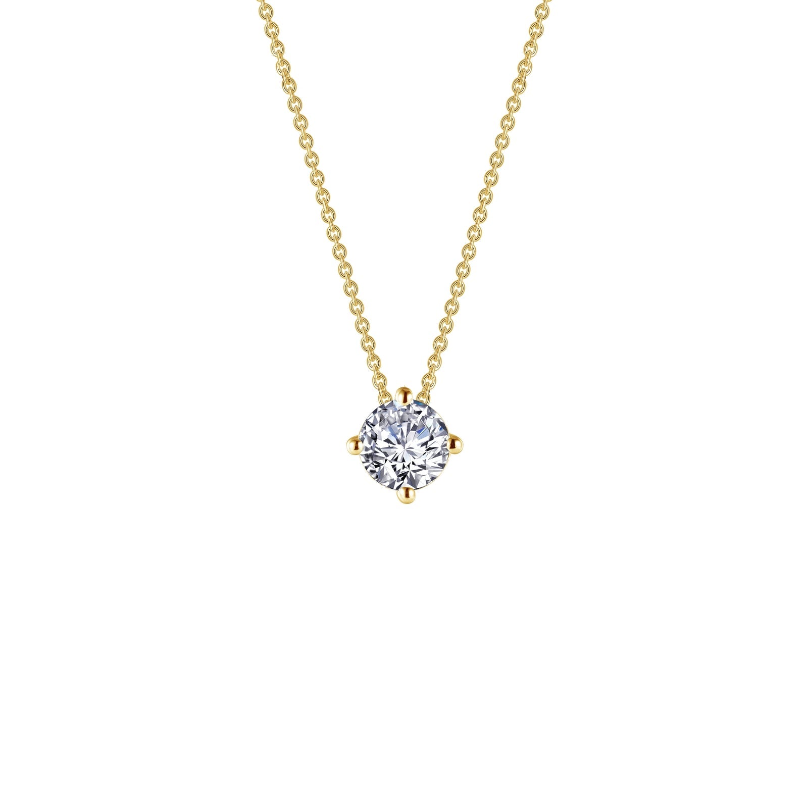 Timeless classics for everyday wear. This adjustable solitaire necklace is set with a Lafonn's signature Lassaire simulated diamond in sterling silver using Lafonn's exclusive TR Gold, a new and improved plating process that preserves the rich color of gold and enhances the wearability of our gold-plated styles. Simulated diamond is 6.0 mm in diameter.