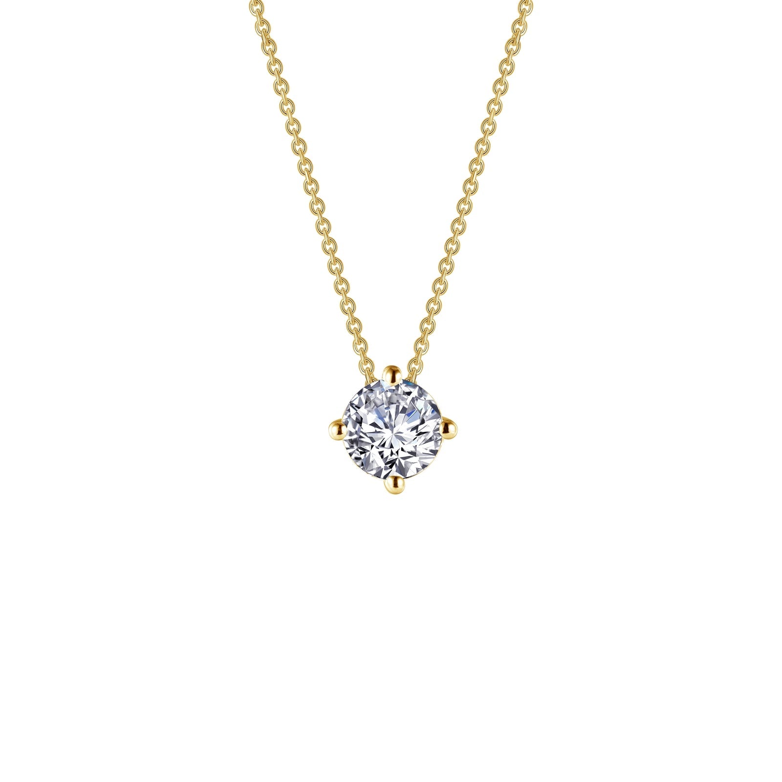 Timeless classics for everyday wear. This adjustable solitaire necklace is set with a Lafonn's signature Lassaire simulated diamond in sterling silver using Lafonn's exclusive TR Gold, a new and improved plating process that preserves the rich color of gold and enhances the wearability of our gold-plated styles. Simulated diamond is 7.0 mm in diameter.