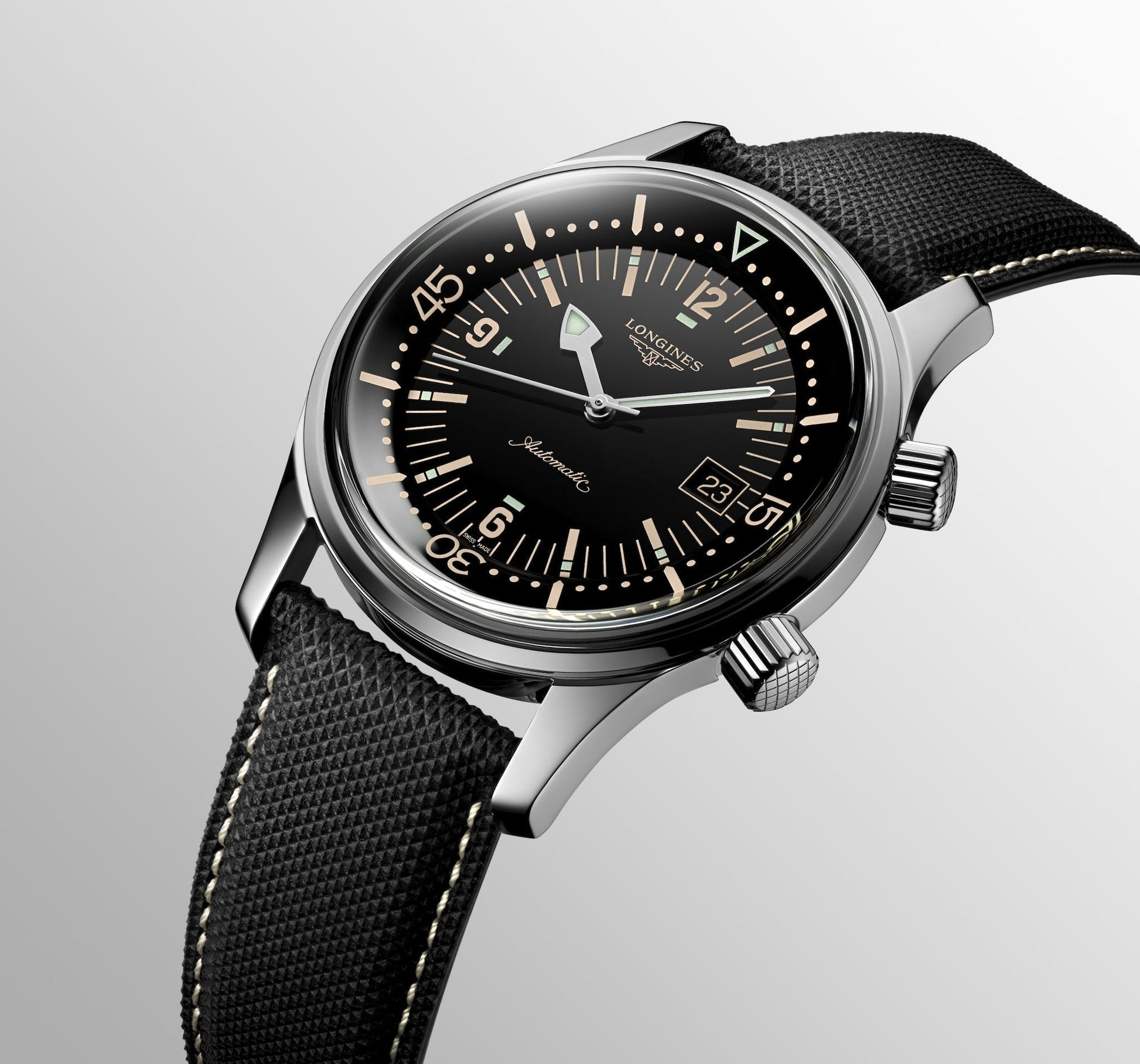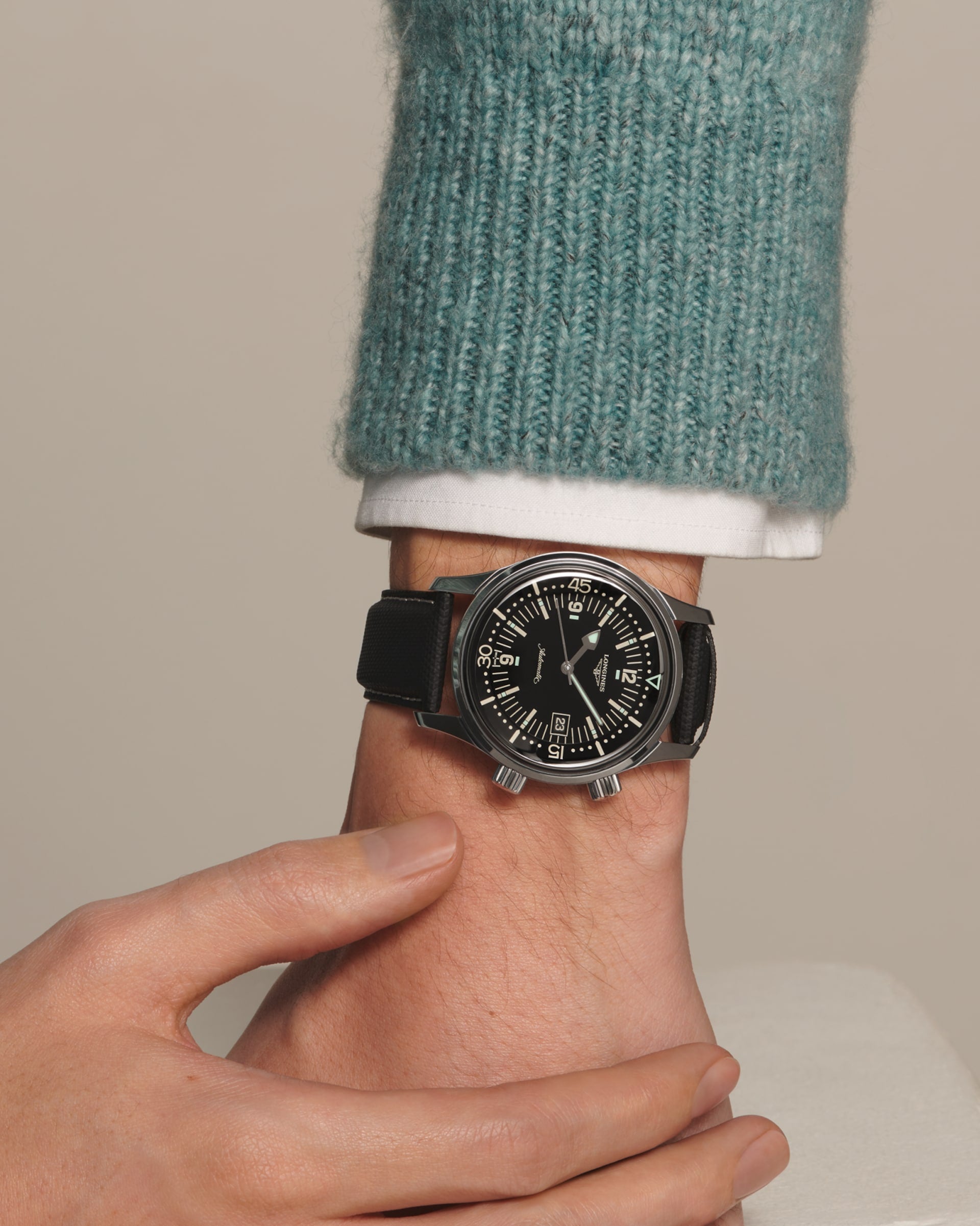Date, Self-winding mechanical movement beating at 25'200 vibrations per hour, with a power reserve up to 72 hours. Internal turning diving flange Screw-in crown, Water-resistant to 30 bar, Scratch-resistant sapphire crystal, with several layers of anti-reflective coating on the underside. Black lacquered polished dial, Swiss Super-LumiNova®. Leather strap bracelet, With buckle.