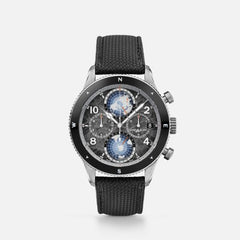 Paying tribute to the world’s highest peaks and the alpinists who dare to climb them enduring extreme conditions, the Montblanc 1858 Geosphere Chronograph 0 Oxygen The 8000 Limited Edition to 290 pieces is housed in a 44mm titanium case totally devoid of oxygen. This has several advantages for explorers by eliminating fogging and preventing oxidization, thus allowing the movement to last far longer with greater precision. Powered by Montblanc’s Manufacture Chronograph with Worldtime complication, Caliber MB 29.27, this automatic movement includes a date at 3 o’clock and two 3D turning globes with the Northern Hemisphere at 12 o’clock and the Southern Hemisphere at six o’clock. Both hemispheres feature orange reference meridians, 14 dots marking the 8000m peaks on the northern continents, and day & night indicators. The timepiece also comes fitted with a fluted bi-directional black ceramic bezel with cardinal points and a 3D colored laser engraving on the case back displaying names and altitudes of the14 eight-thousanders. The dial and bezel luminescent indications are very practical for any outdoor adventures.
