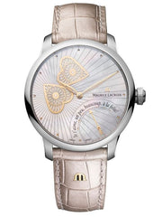 Decorations: Rhodium-plated movement with Colimaçon and M-logo lining; vertical Côtes de Genève, sand-blasted and Colimaçon on the rotor