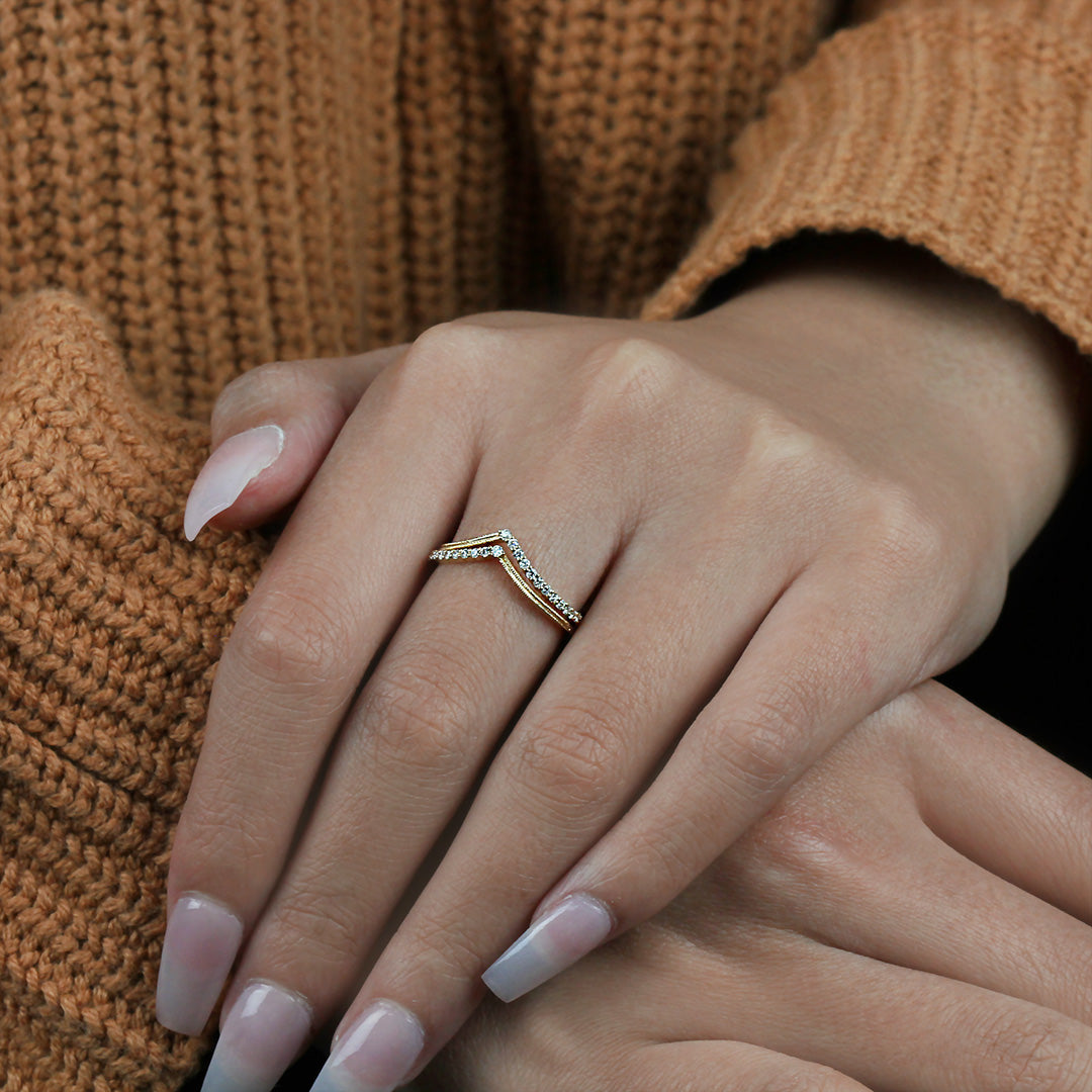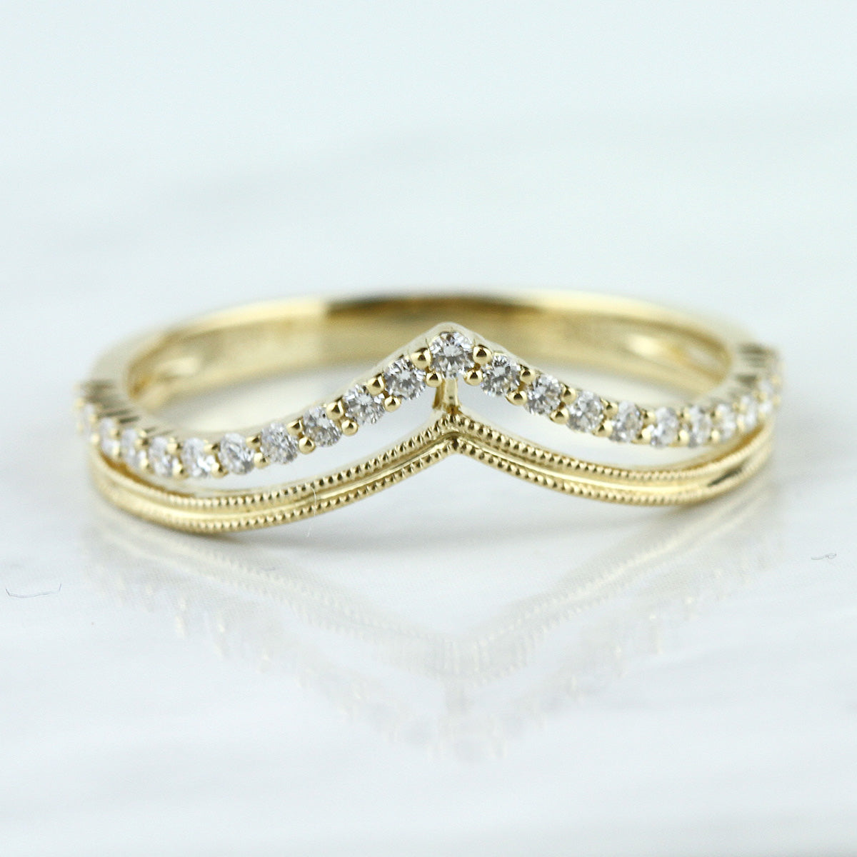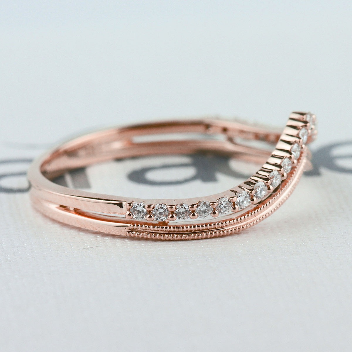 From the Lumiere Bridal collection, a chevron shaped double row split diamond band finished with fine milgrain detailing.