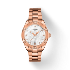 This round watch has a 36mm by 36mm 316L stainless steel case, 9mm thickness, and 18mm lug width. It features a scratch-resistant sapphire crystal with an anti-reflective coating.