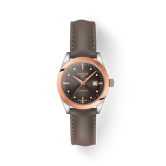 The Tissot T-My Lady is not just a feminine watch. Its concept, design and profound vocation make it the ideal watch for women: ladies, elegant, refined or business women - who consider that a watch is an object that journeys through time. Its dimensions - 29 mm in diameter - makes it the ideal everyday companion. Its 18k solid gold burnished bezel gives relief, character and warmth to the T-My Lady collection. Its mechanical self-winding movement, regulated by a Nivachron spiral has exceptional non-magnetic capacities.