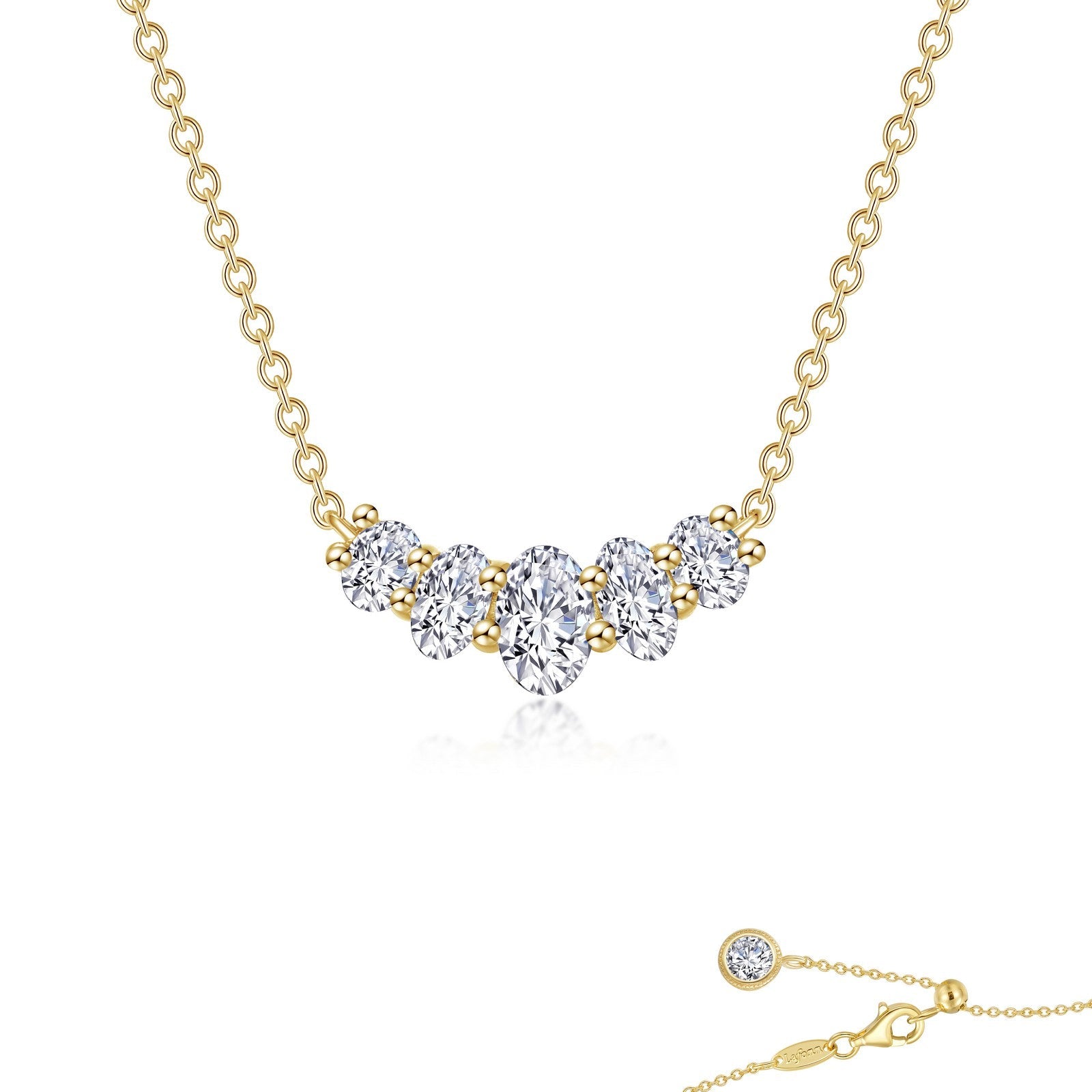 A timeless classic. Wear on its own or add to your favorite layer of necklaces. This adjustable five-stone necklace features Lafonn's oval signature simulated diamonds elegantly arranged to maximize the sparkle. The necklace is in sterling silver using Lafonn's exclusive TR Gold, a new and improved plating process that preserves the rich color of gold and enhances the wearability of our gold-plated styles.