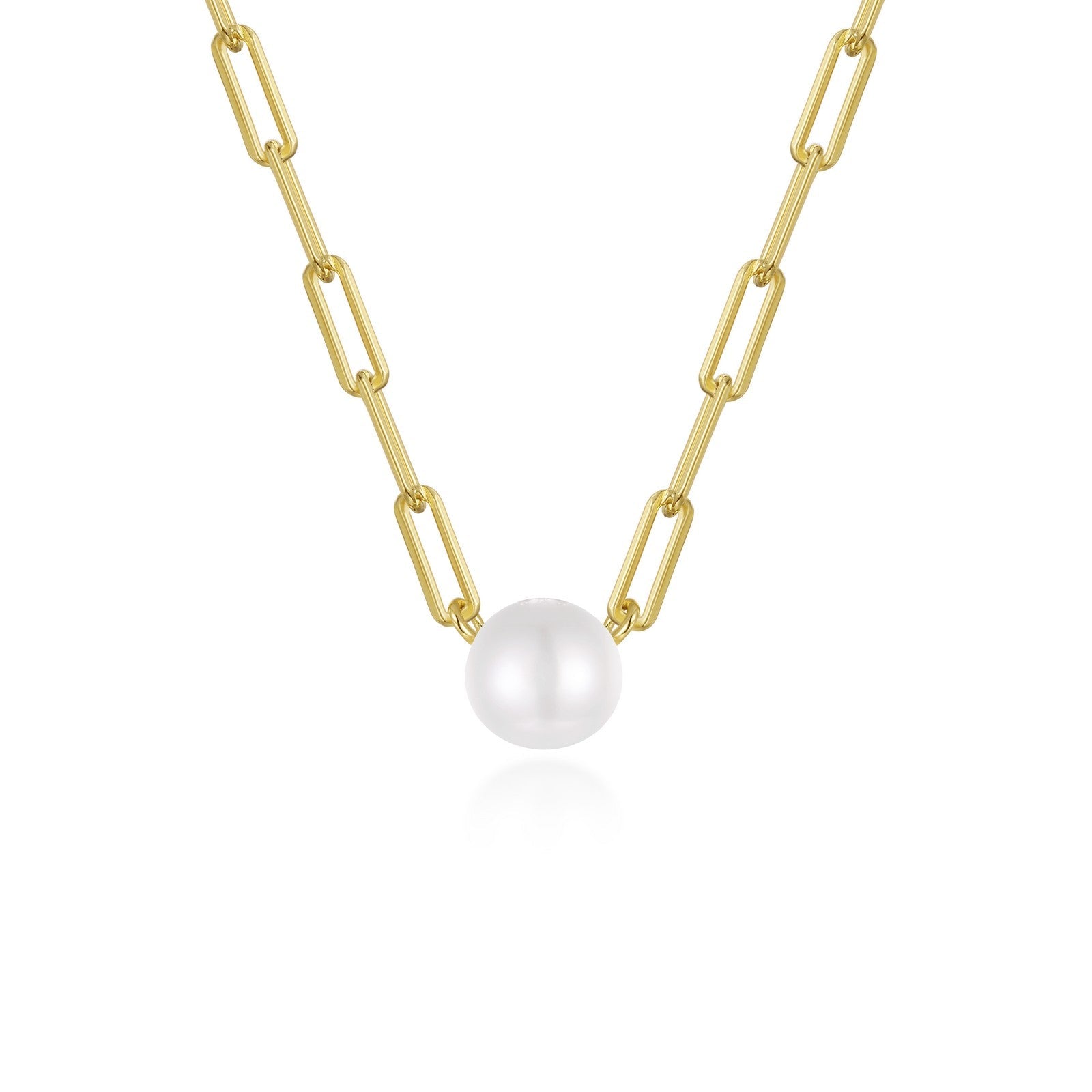Wear on its own or add to your favorite layer of necklaces. This elegant link style paperclip necklace features a cultured freshwater pearl at the center link. This necklace is in sterling silver silver using Lafonn's exclusive TR Gold, a new and improved plating process that preserves the rich color of gold and enhances the wearability of our gold-plated styles.