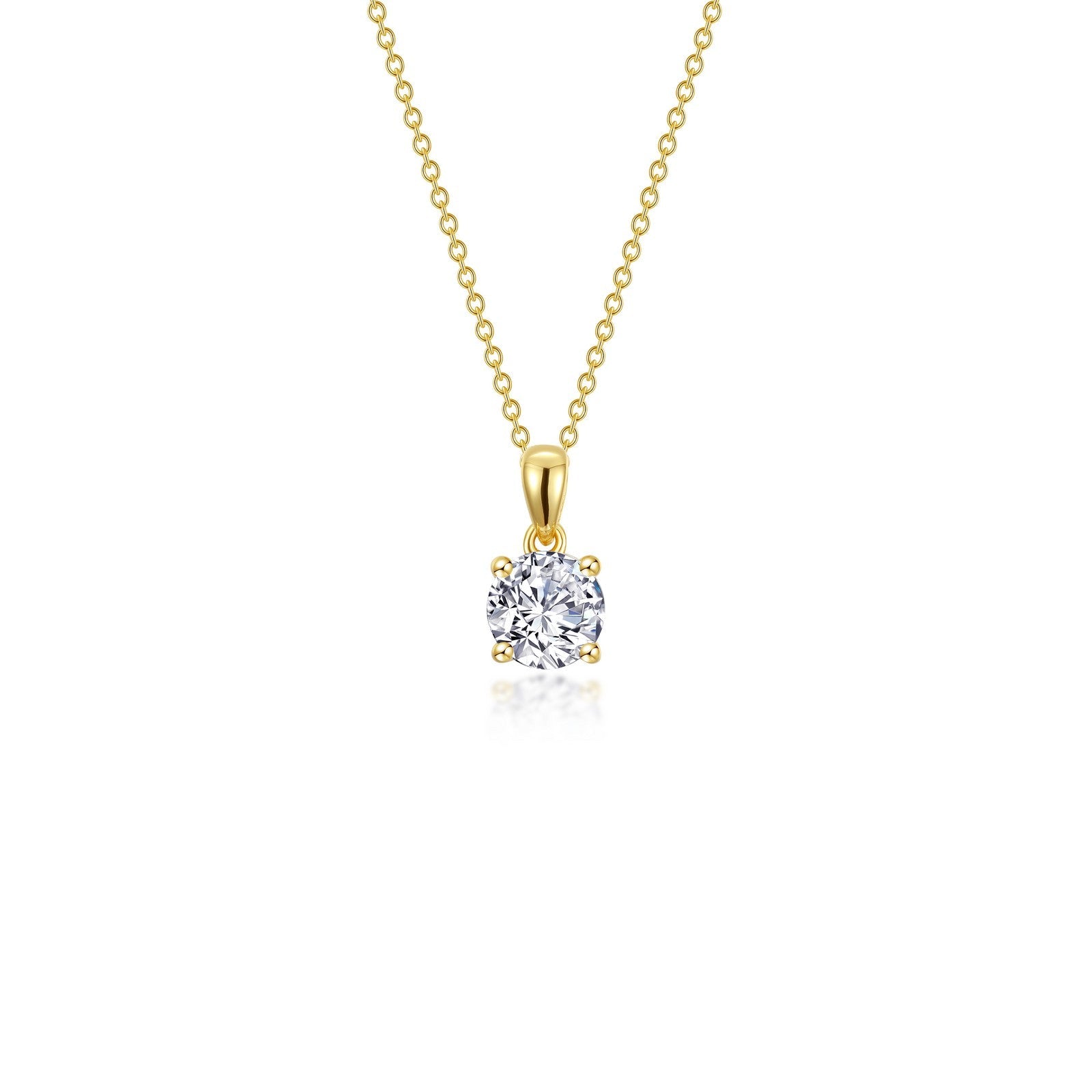 A timeless classic. This solitaire pendant necklace is set with a Lafonn's signature Lassaire simulated diamond in sterling silver using Lafonn's exclusive TR Gold, a new and improved plating process that preserves the rich color of gold and enhances the wearability of our gold-plated styles. The pendant comes on an adjustable 20" chain.