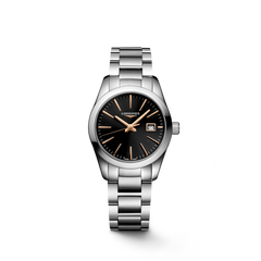 Date. Water-resistant to 5 bar, Scratch-resistant sapphire crystal, with several layers of anti-reflective coating on the underside. Black dial. Stainless steel bracelet, With triple safety folding clasp and push-piece opening mechanism.