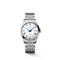 Width: Date, Self-winding mechanical movement beating at 28'800 vibrations per hour, with a monocrystalline silicon balance-spring power reserve up to 45 hours. Water-resistant to 3 bar, Scratch-resistant sapphire crystal, with several layers of anti-reflective coating on the underside. Sunray blue dial. Stainless steel bracelet, With triple safety folding clasp and push-piece opening mechanism.