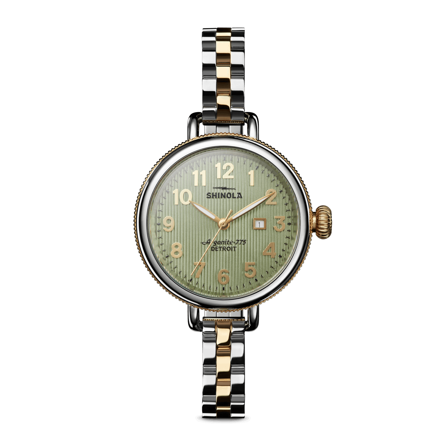 This playful and sophisticated classic features all the signature Shinola details—a bold dial, coin edge and wire lugs—but keeps life interesting with a unique eucalyptus green dial with a texture that creates a three-dimensional striped effect. It's a tale of epic proportions, alternative dimensions and meticulous craftsmanship.
