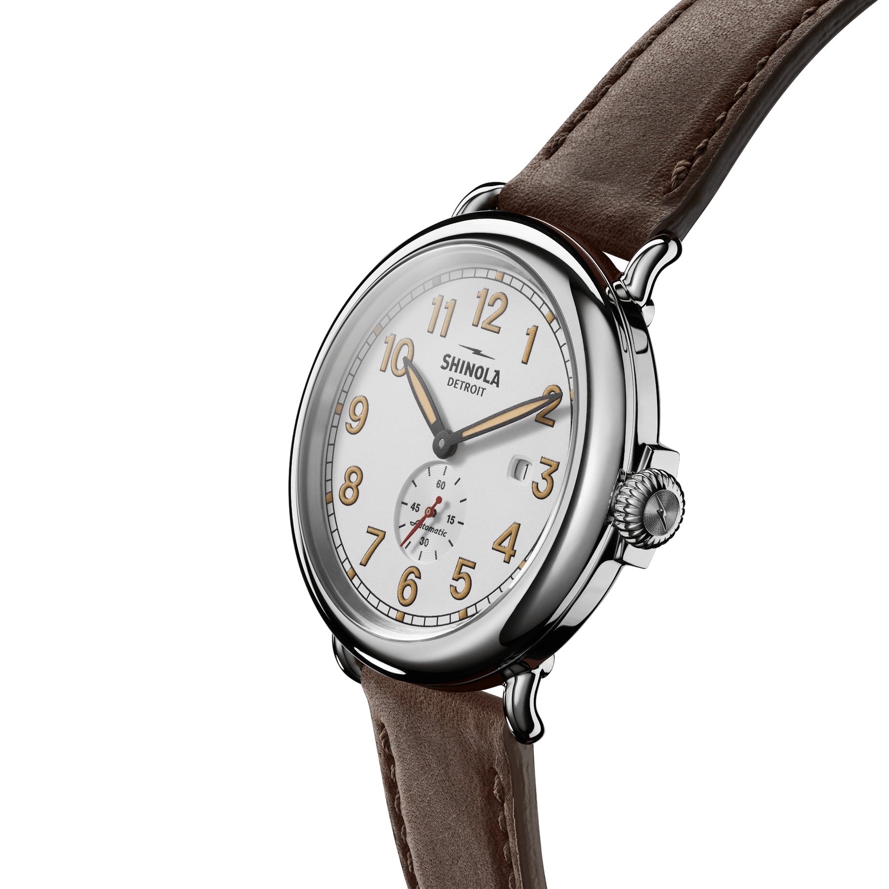 EVERY SECOND COUNTS  Introducing the Station Agent Runwell Automatic, our first Runwell Automatic with a sub-second dial. This evolution of our flagship watch is inspired by the Station Agents that tended to American railways at the height of travel by train. Responsible for the comings and goings of millions, a Station Agent knew the value of every single second—and they needed a watch that could keep up. The Station Agent Runwell Automatic is a tribute to those timekeepers.  Stay on track and on time with the sub-second dial. Watch the Station Agent’s engine—the Swiss-made SW260-1 Sellita Movement—at work through the sapphire crystal exhibition window. From the solid stainless steel case to the Cattail Grizzly leather strap, it’s a watch fit for every occasion, no matter where you’re headed. The uniquely crafted dial features a matte vellum texture and Super-LumiNova on the hands that’s color-matched to aged radium found on vintage watches.