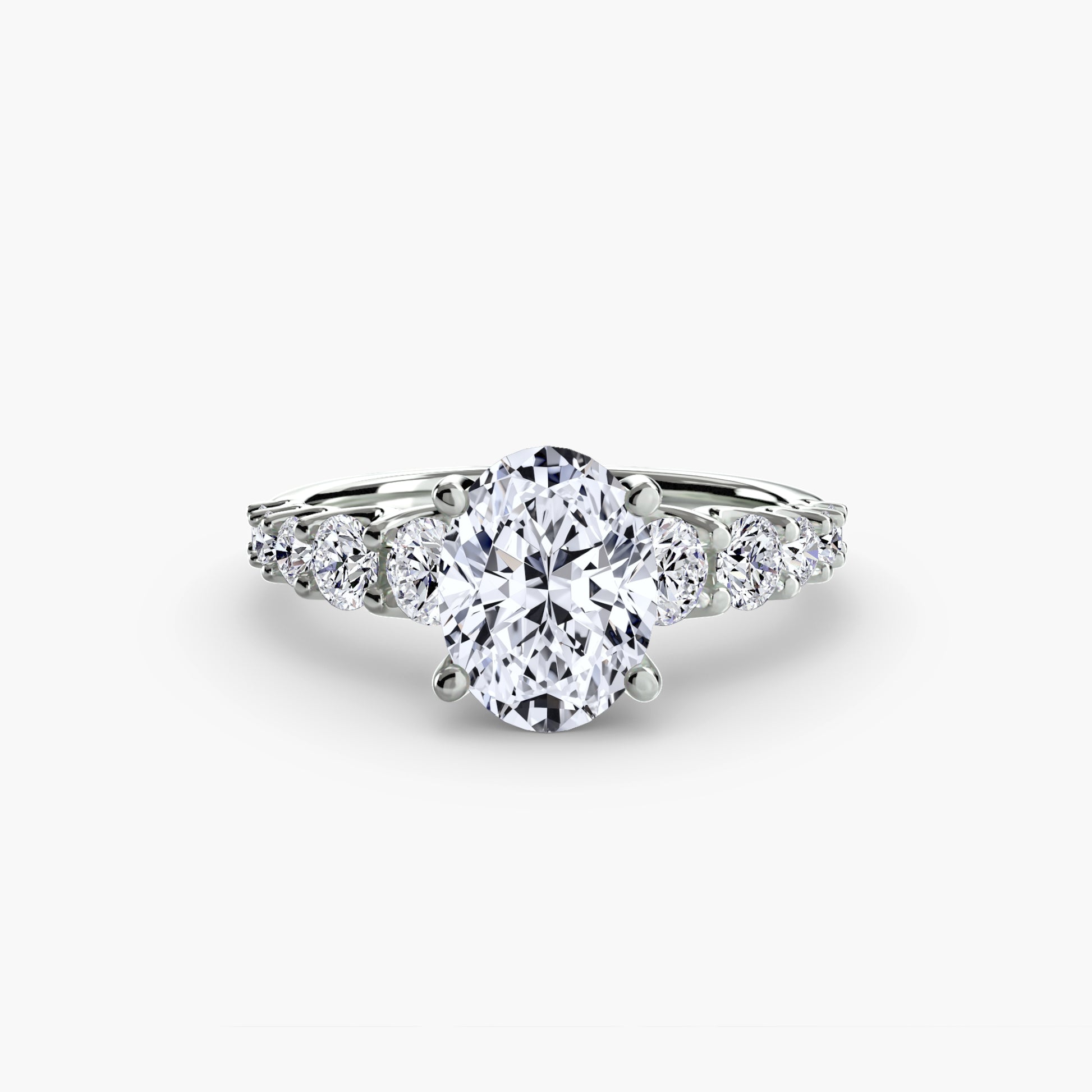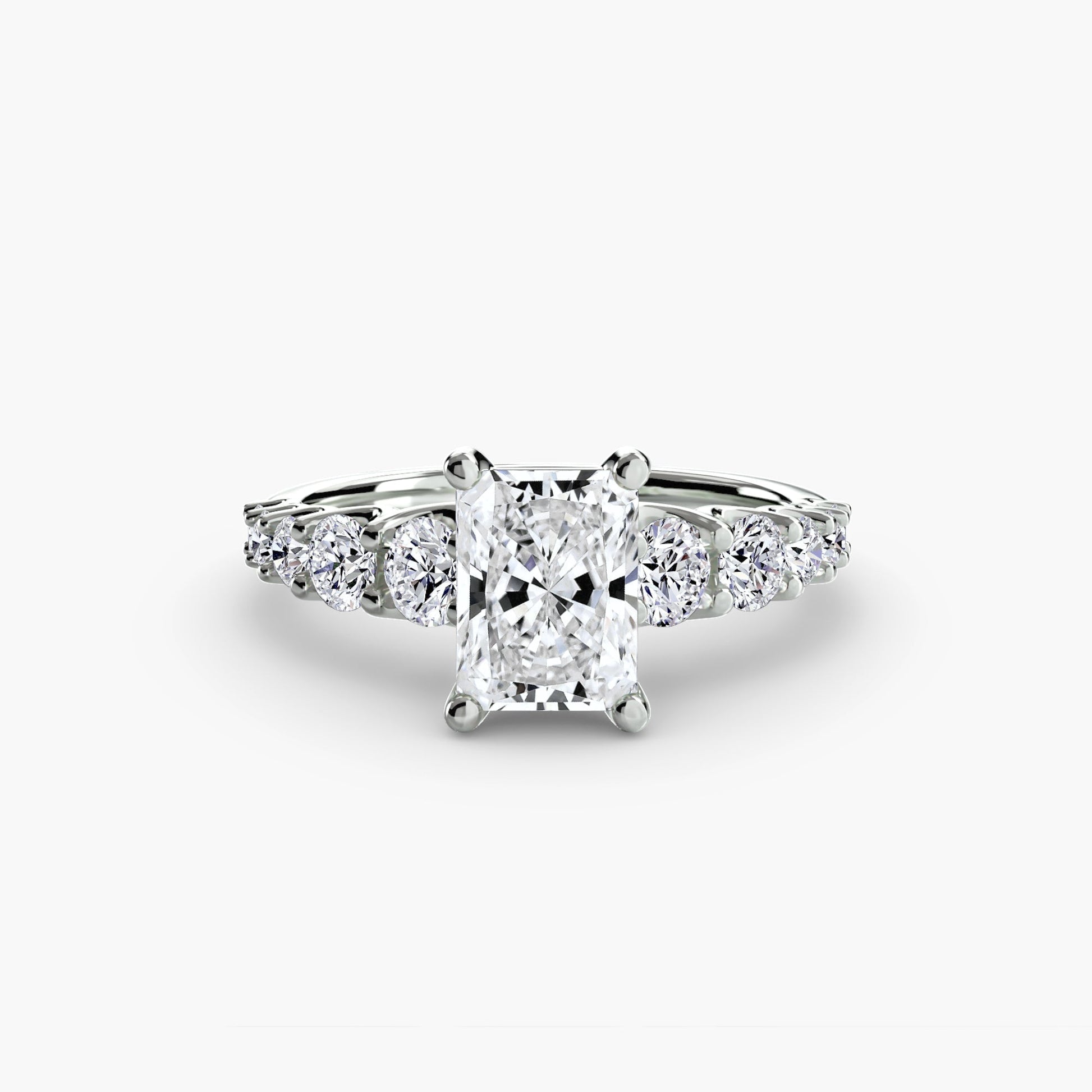 Designed with side stones that gracefully complement the center stone, this ring strikes a balance between classic elegance and added brilliance. Perfect for those who want a refined look with just the right amount of sparkle.