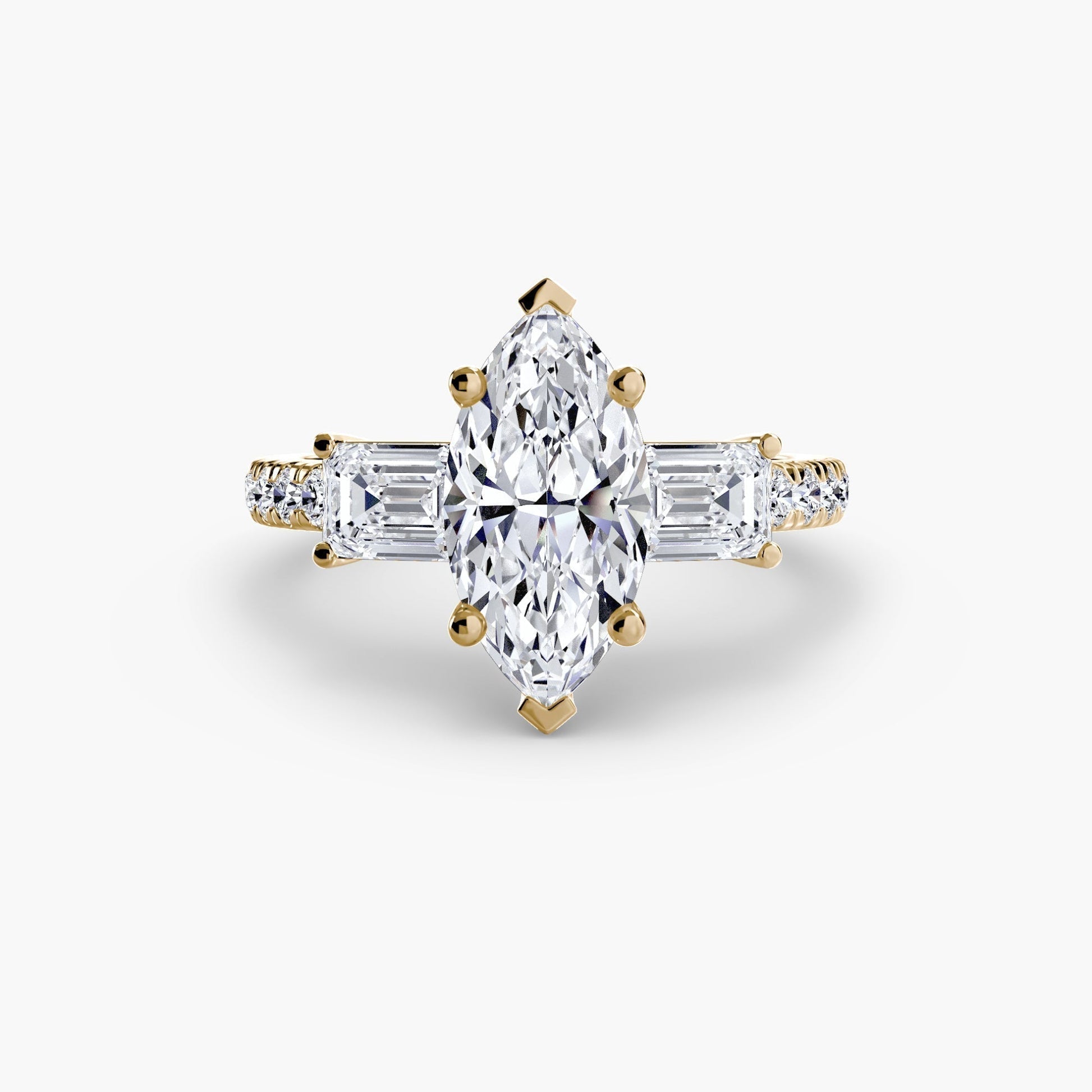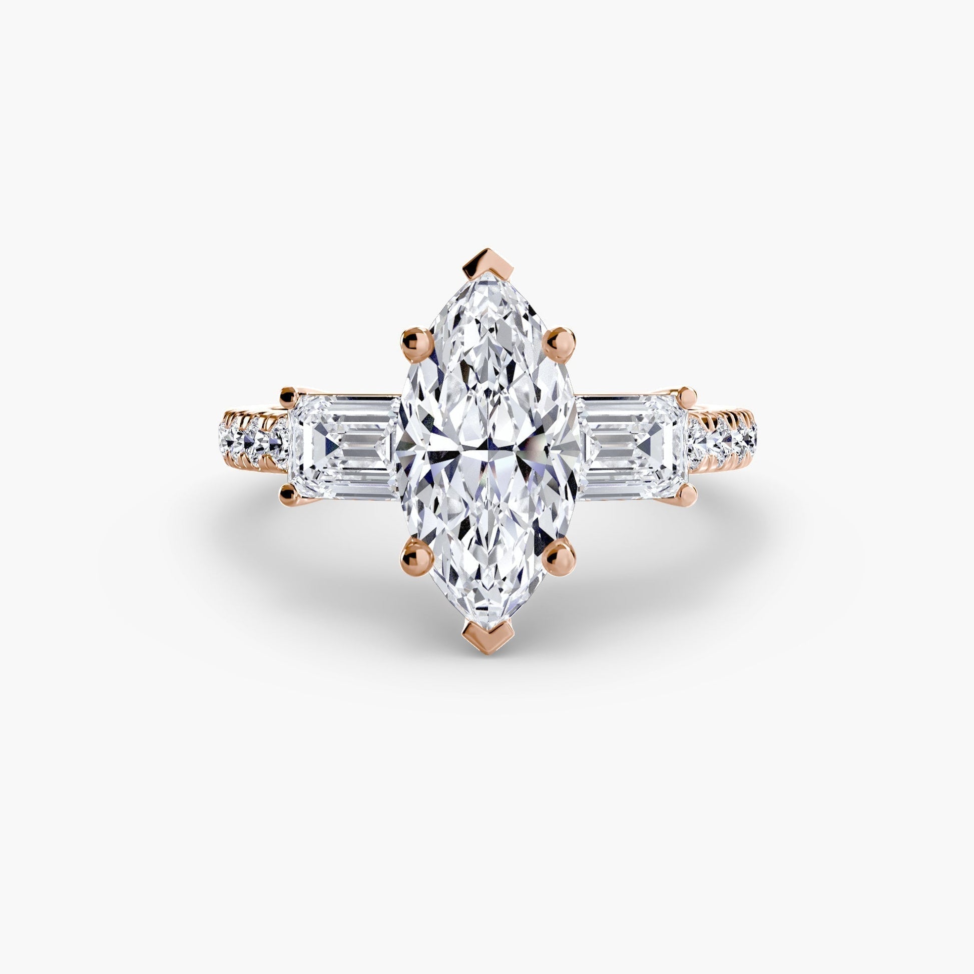 This elegant three-stone ring symbolizes your past, present, and future, elevated with a pavé band for extra sparkle and detail. A perfect union of meaning and brilliance.