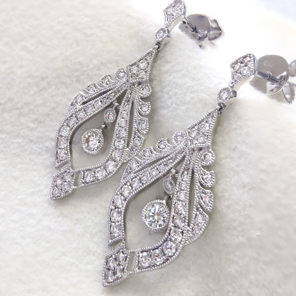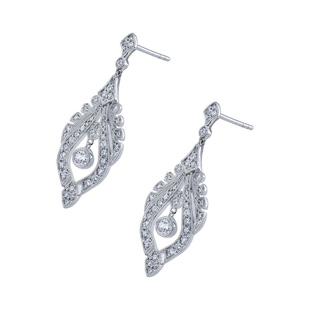 From the Parade in Fashion collection, romantic dangle earrings featuring intricate scrolling diamonds finished with fine milgrain detailing.