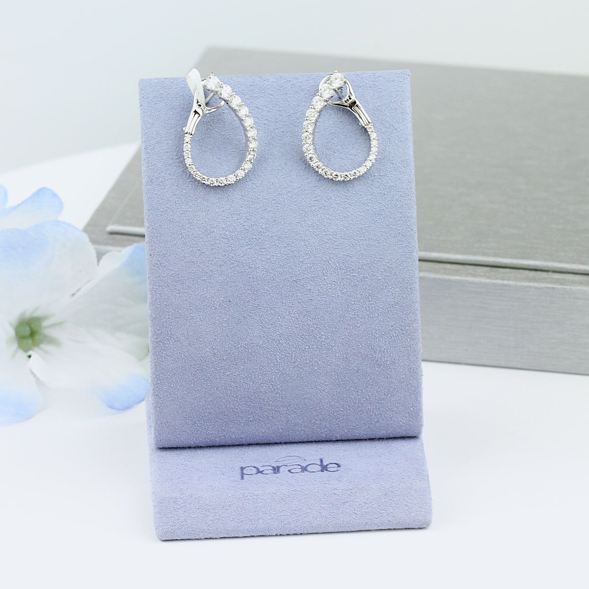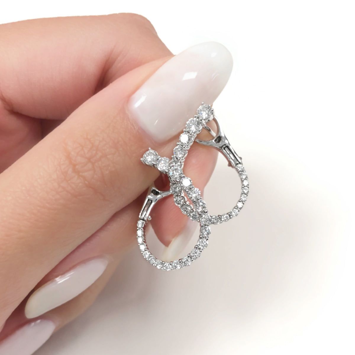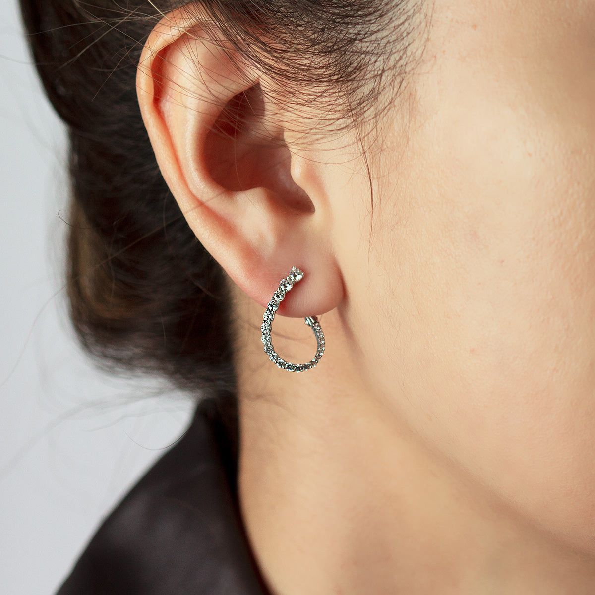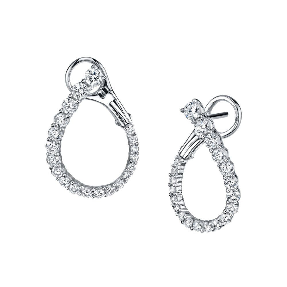 An elegant and modern take on a classic hoop earring with graduated prong set sparkling white diamonds.