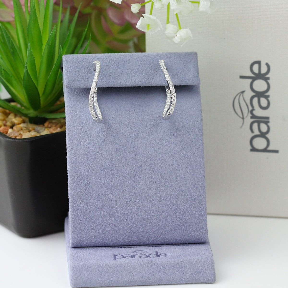 Discover a new twist with these diamond hoop earrings. A modern spin on the classic inside/out hoop earrings.