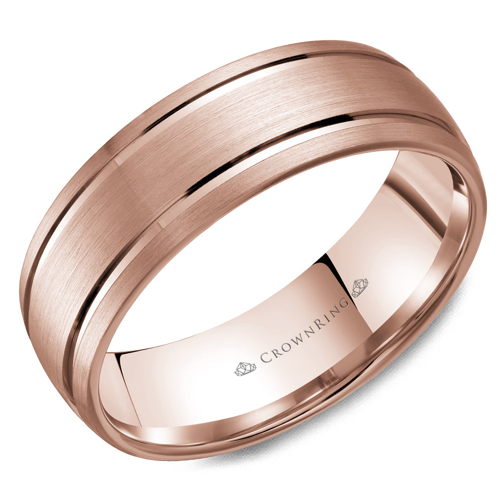 A 7.00mm Crownring Wedding Band in White/Rose/Yellow Gold and Platinum