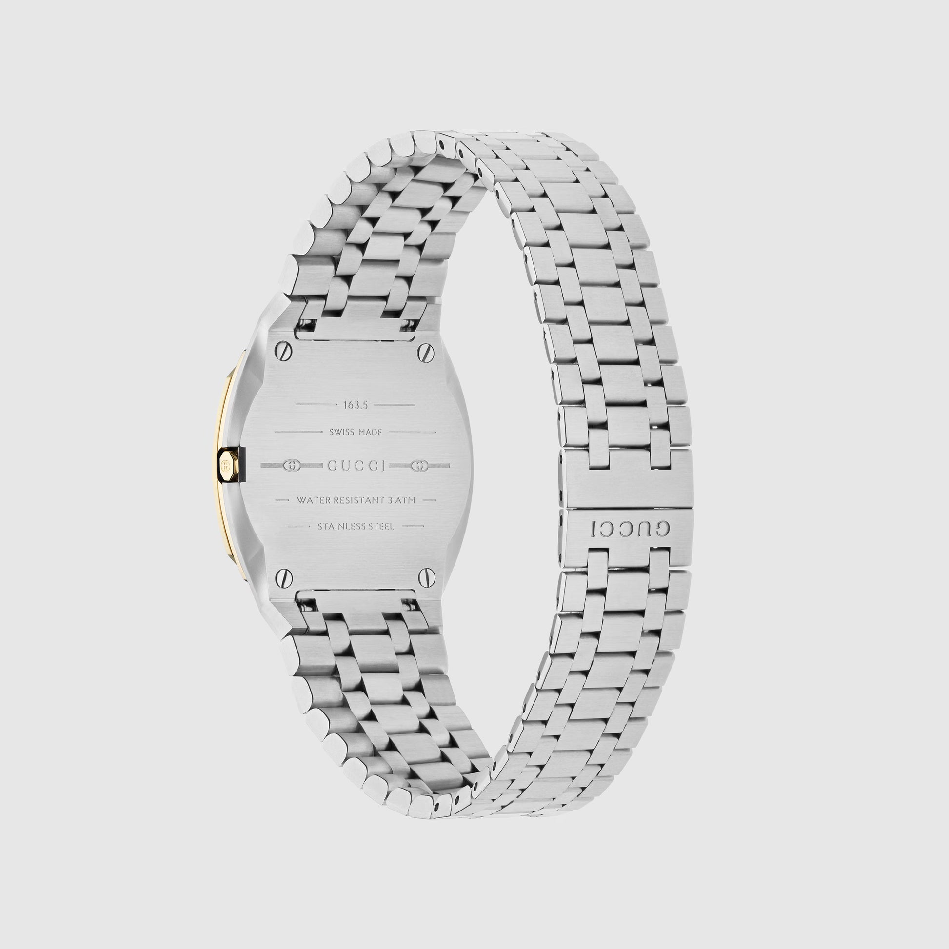 The GUCCI 25H's streamlined silhouette was inspired by the sleek forms of contemporary architecture. The watch is presented with a thin multi-layer case and five-link steel bracelet, while the design is completed by monogram details and a gold-toned dial.
