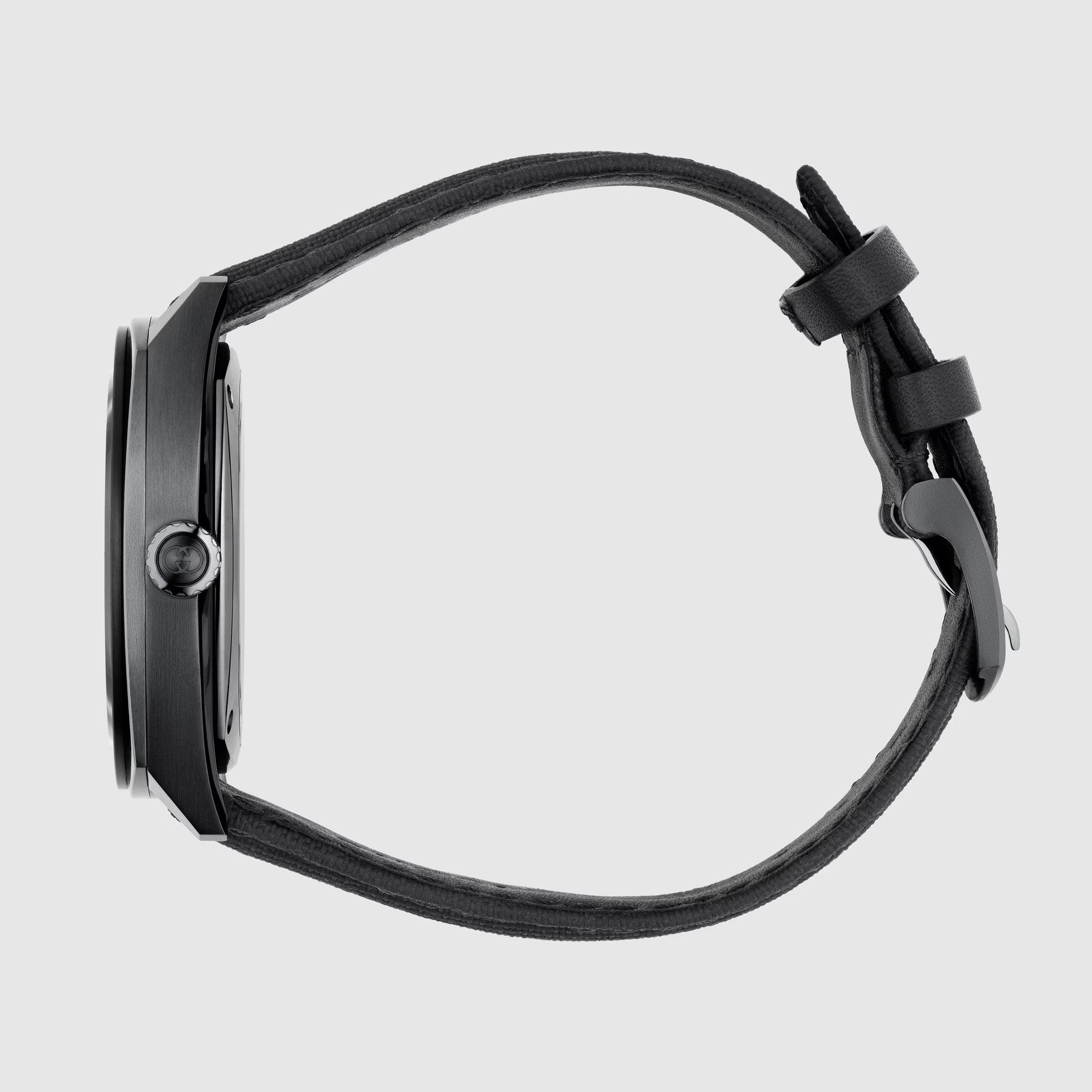 Powered by an automatic movement, the new Gucci Interlocking watch combines the historic codes of the House with a contemporary feel. The style in 41mm case offers a black dial with a black PVD bezel. Finished with a black rubber strap with textile effect, the accessory is enriched with the signature Interlocking G logo in a small seconds display.