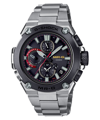 The pure black beauty of Japanese lacquer with gold and red accents. Majestic beauty in a mid-size MR-G. Shock-resistant full-metal design with Bluetooth® radio-controlled solar-powered timekeeping Introducing an elegantly beautiful new titanium model for the mid-size series of the G-SHOCK MR-G flagship lineup. Everything possible has been done to reflect the metal crafting aesthetics of armor, swords, and other Japanese arms, which have been symbols of power in Japan since time immemorial.